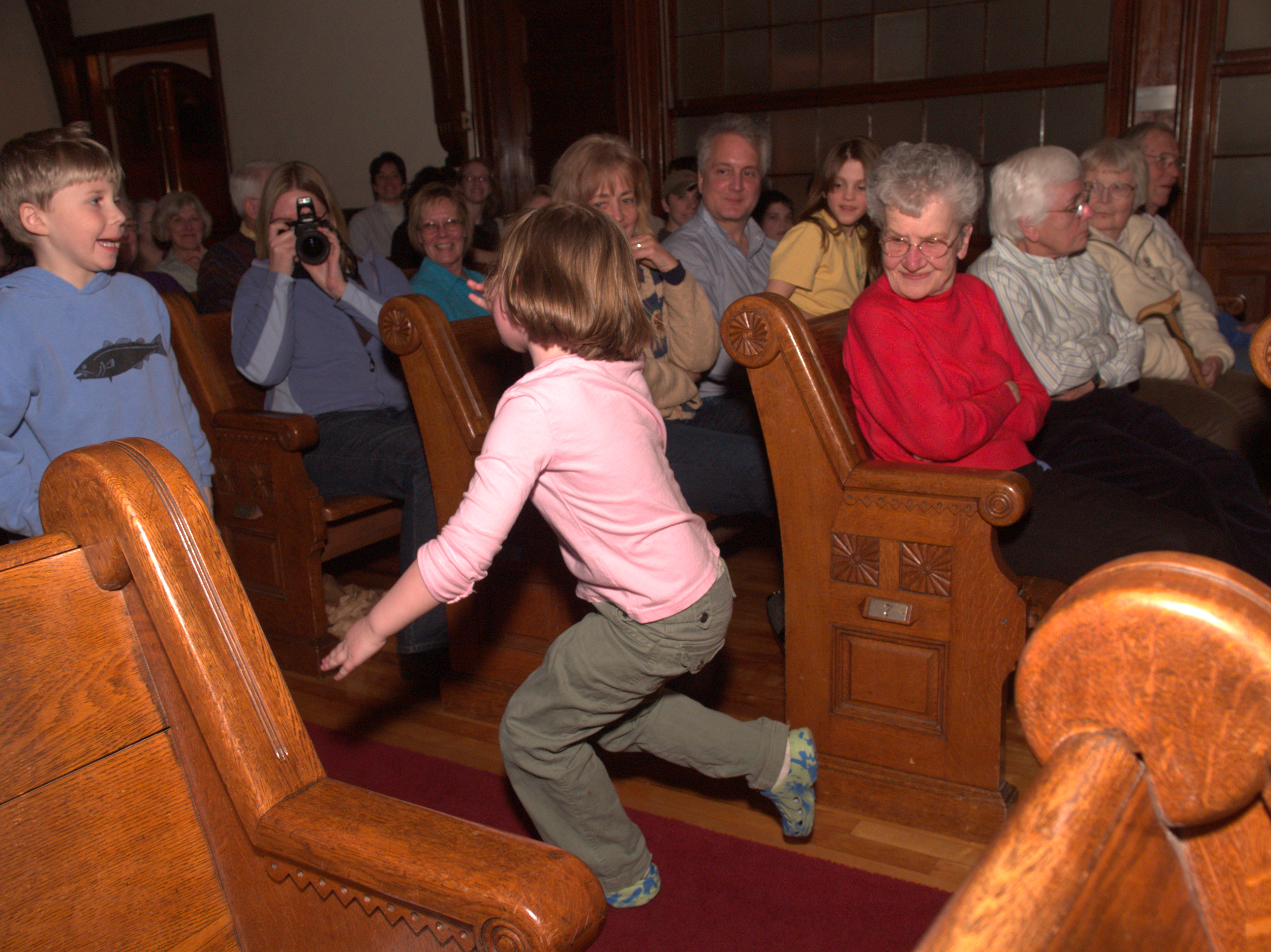 Picture #29: Kids dance #5 Small: 656x515, 74,753 bytes (74K), (html file) Large: 2624x1966, 3,298,441 bytes (3.1M), (html file) Copyright, Michael Meissner 2007, All rights reserved Olympus E-1 camera with Olympus 11-22mm f/2.8-3.5 lens f/4.0, ISO 400, FL-50 flash, 1/125 sec, 11.0mm, manual mode, SHQ, matrix metering, +2 sharpening 35mm equivalent focal length 22.0mm Extra equipment used: FL-50 flash Programs used: adjust-time, gimp, neatimage Taken by Michael Meissner on March 10, 2007 18:26:41 Last modified on March 10, 2007 at 17:26 |