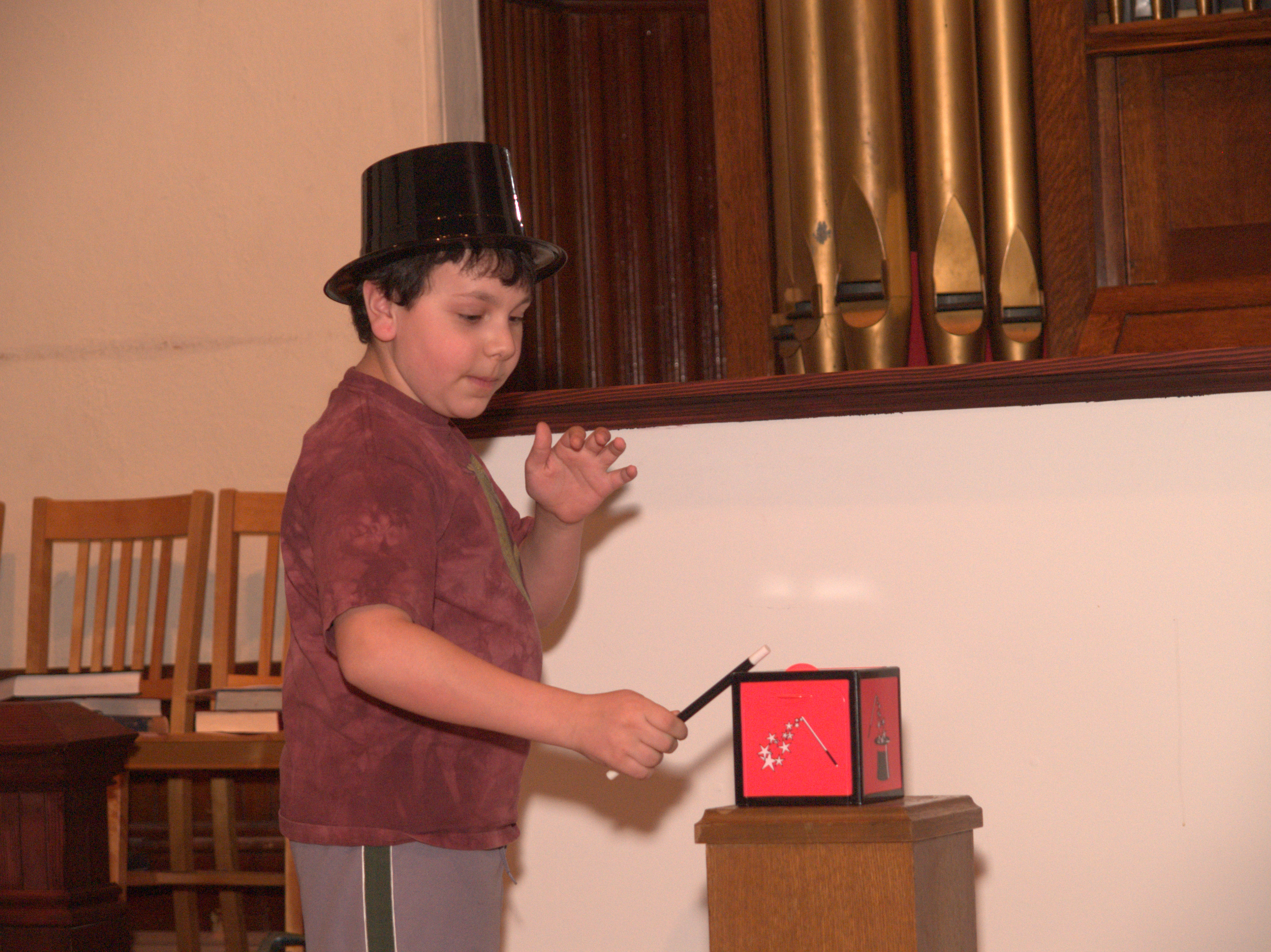 Picture #35: Magic show #2 Small: 656x515, 62,573 bytes (62K), (html file) Large: 2624x1966, 6,091,551 bytes (5.8M), (html file) Copyright, Michael Meissner 2007, All rights reserved Olympus E-1 camera with Olympus 14-54mm f/2.8-3.5 lens f/4.0, ISO 400, FL-50 flash, 1/125 sec, 52.0mm, manual mode, SHQ, matrix metering, +2 sharpening 35mm equivalent focal length 104.0mm Extra equipment used: FL-50 flash Programs used: adjust-time Taken by Michael Meissner on March 10, 2007 19:30:55 Last modified on March 10, 2007 at 17:30 |