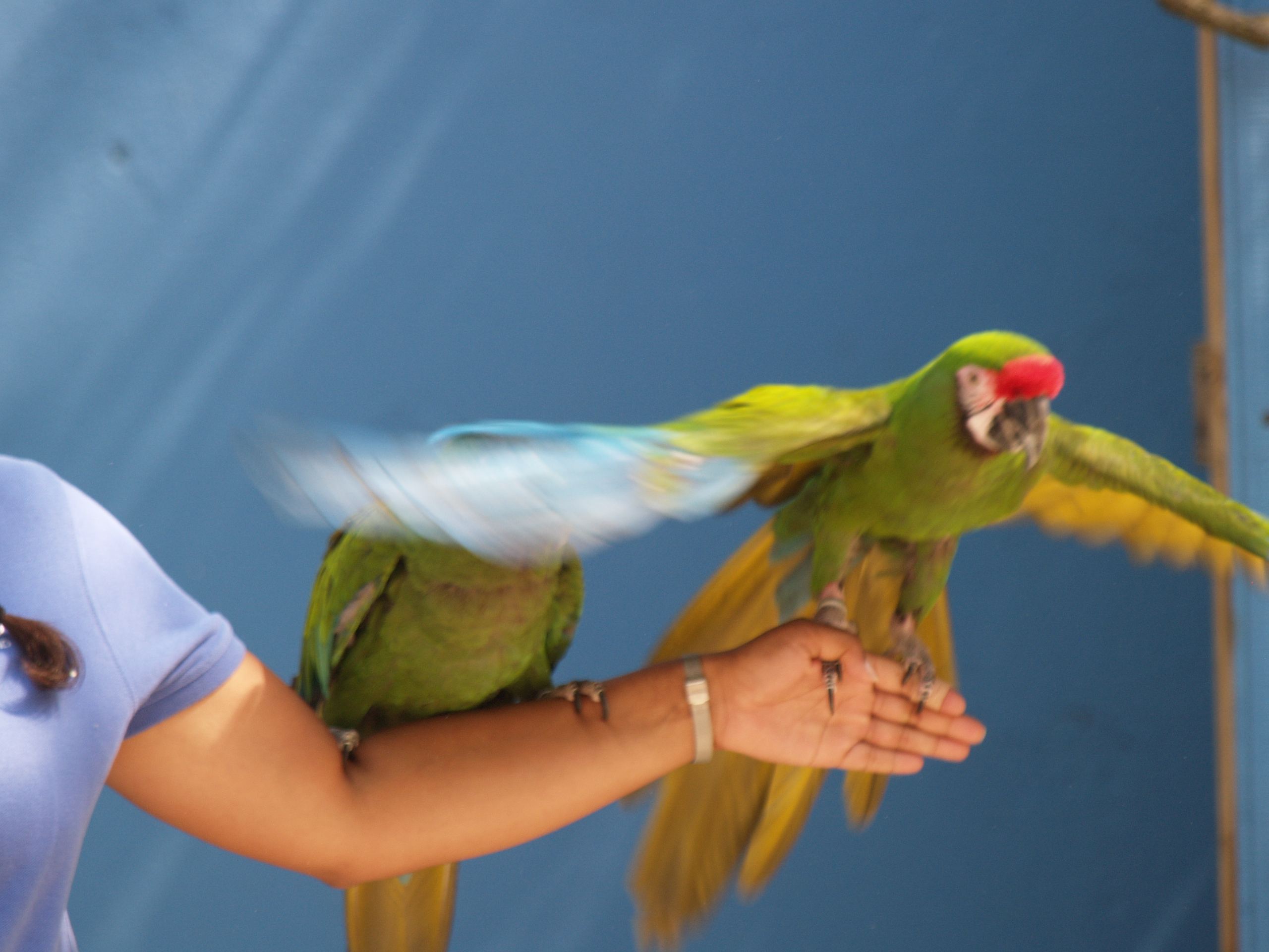 Picture #30: Macaw flying #4 Small: 640x503, 54,342 bytes (54K), (html file) Large: 2560x1920, 3,766,434 bytes (3.6M), (html file) Copyright, Michael Meissner 2007, All rights reserved Olympus E-1 camera with Olympus 50-200mm f/2.8-3.5 lens and Olympus EC-14 (1.4x) f/5.6, ISO 200, 1/320 sec, 70.0mm, auto mode, SHQ, matrix metering, +2 sharpening, continous focus 35mm equivalent focal length 140.0mm, EC-14 Taken by Michael Meissner on May 28, 2007 15:08:35 Last modified on May 28, 2007 at 15:08 |