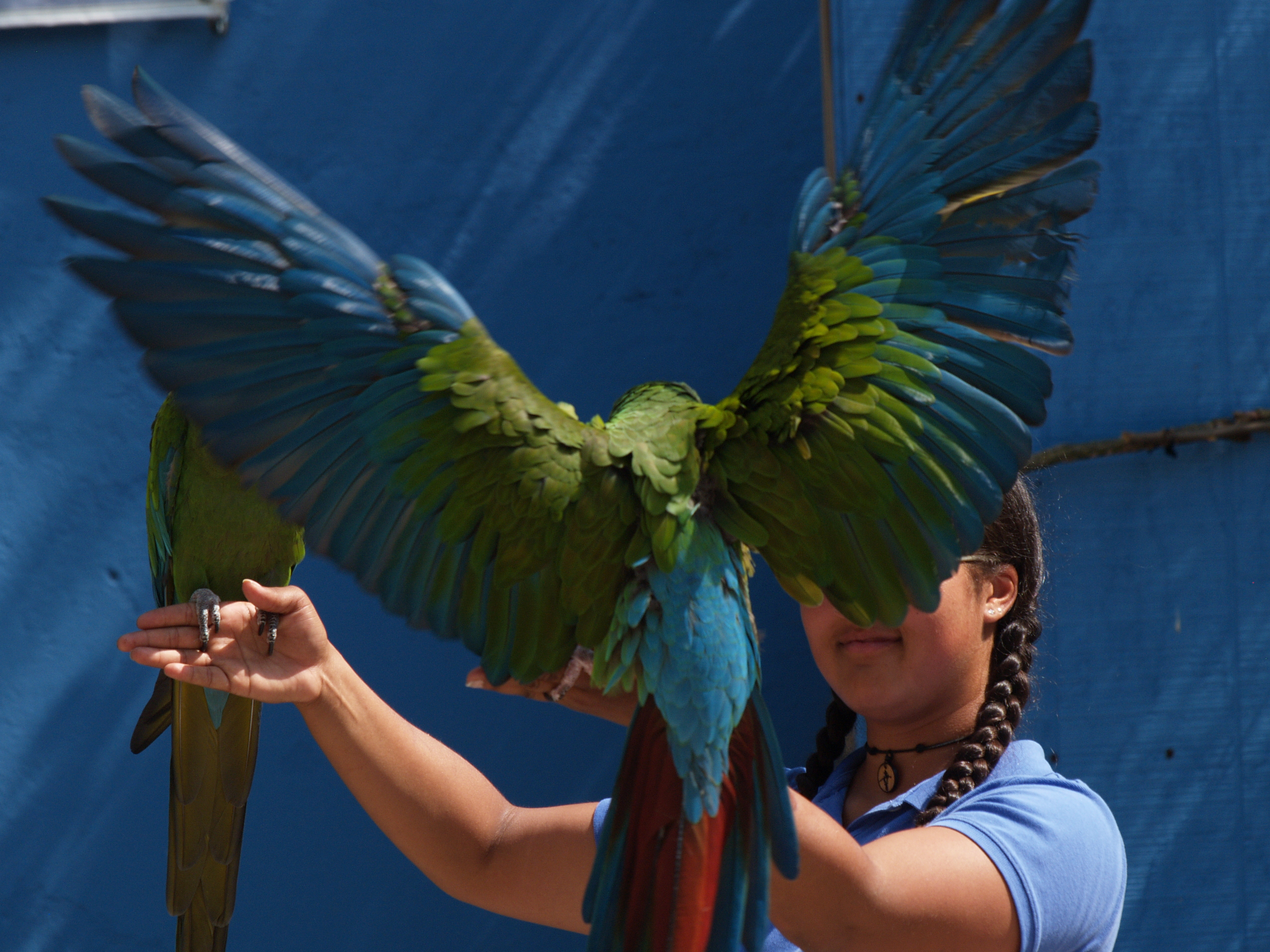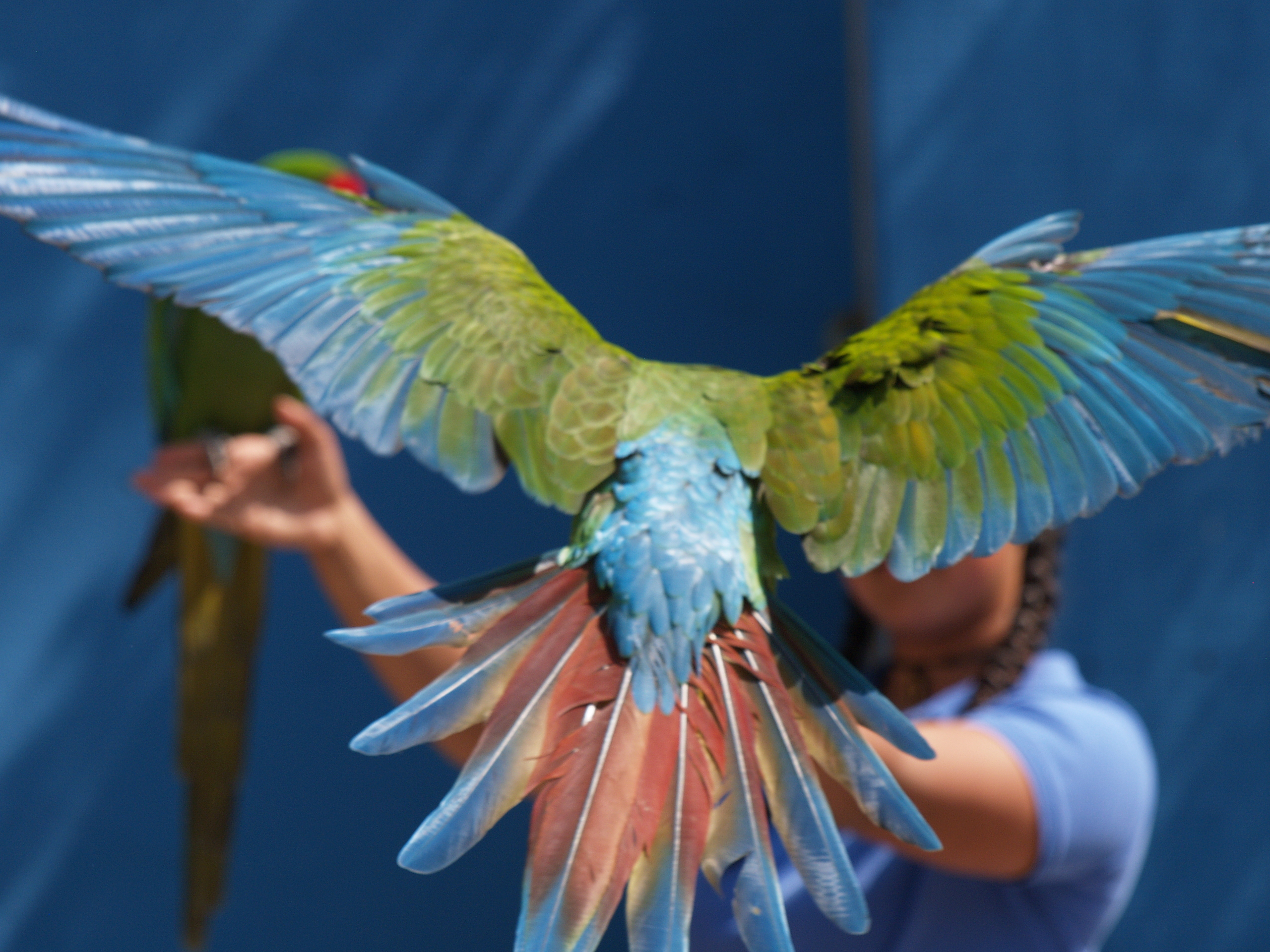 Picture #28: Macaw wings Small: 640x503, 49,590 bytes (49K), (html file) Large: 2560x1920, 3,598,968 bytes (3.4M), (html file) Copyright, Michael Meissner 2007, All rights reserved Olympus E-1 camera with Olympus 50-200mm f/2.8-3.5 lens and Olympus EC-14 (1.4x) f/6.3, ISO 200, 1/400 sec, 194.0mm, auto mode, SHQ, matrix metering, +2 sharpening, continous focus 35mm equivalent focal length 389.0mm, EC-14 Taken by Michael Meissner on May 28, 2007 15:08:42 Last modified on May 28, 2007 at 15:08 |