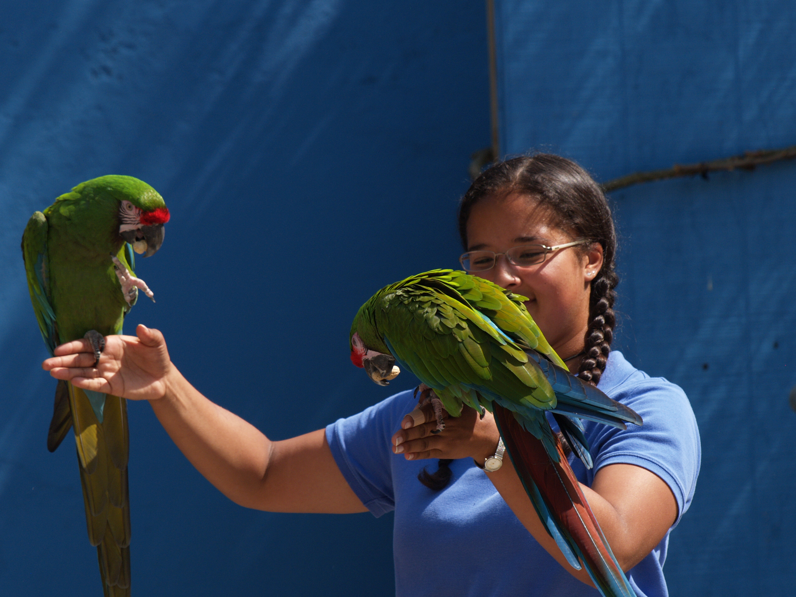 Picture #25: Macaws Small: 640x503, 48,929 bytes (48K), (html file) Large: 2560x1920, 3,745,526 bytes (3.6M), (html file) Copyright, Michael Meissner 2007, All rights reserved Olympus E-1 camera with Olympus 50-200mm f/2.8-3.5 lens and Olympus EC-14 (1.4x) f/6.3, ISO 200, 1/400 sec, 194.0mm, auto mode, SHQ, matrix metering, +2 sharpening, continous focus 35mm equivalent focal length 389.0mm, EC-14 Taken by Michael Meissner on May 28, 2007 15:08:44 Last modified on May 28, 2007 at 15:08 |