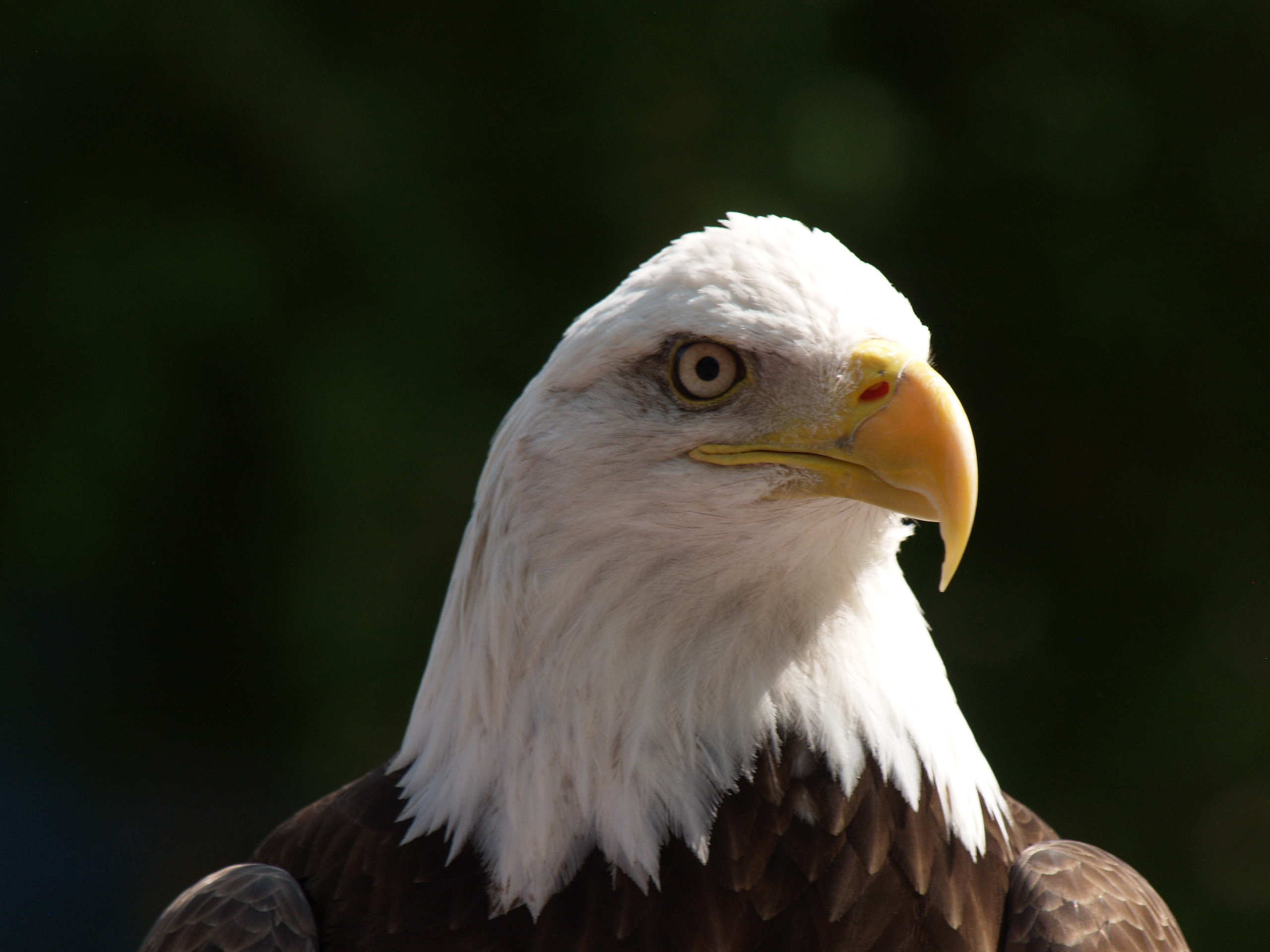 Picture #11: Eagle #4 Small: 640x503, 65,874 bytes (65K), (html file) Large: 2560x1920, 3,229,532 bytes (3.1M), (html file) Copyright, Michael Meissner 2007, All rights reserved Olympus E-1 camera with Olympus 50-200mm f/2.8-3.5 lens and Olympus EC-14 (1.4x) f/5.0, ISO 200, 1/250 sec, 174.0mm, auto mode, SHQ, matrix metering, +2 sharpening, continous focus 35mm equivalent focal length 349.0mm, EC-14 Taken by Michael Meissner on May 28, 2007 15:18:03 Last modified on May 28, 2007 at 15:18 |
