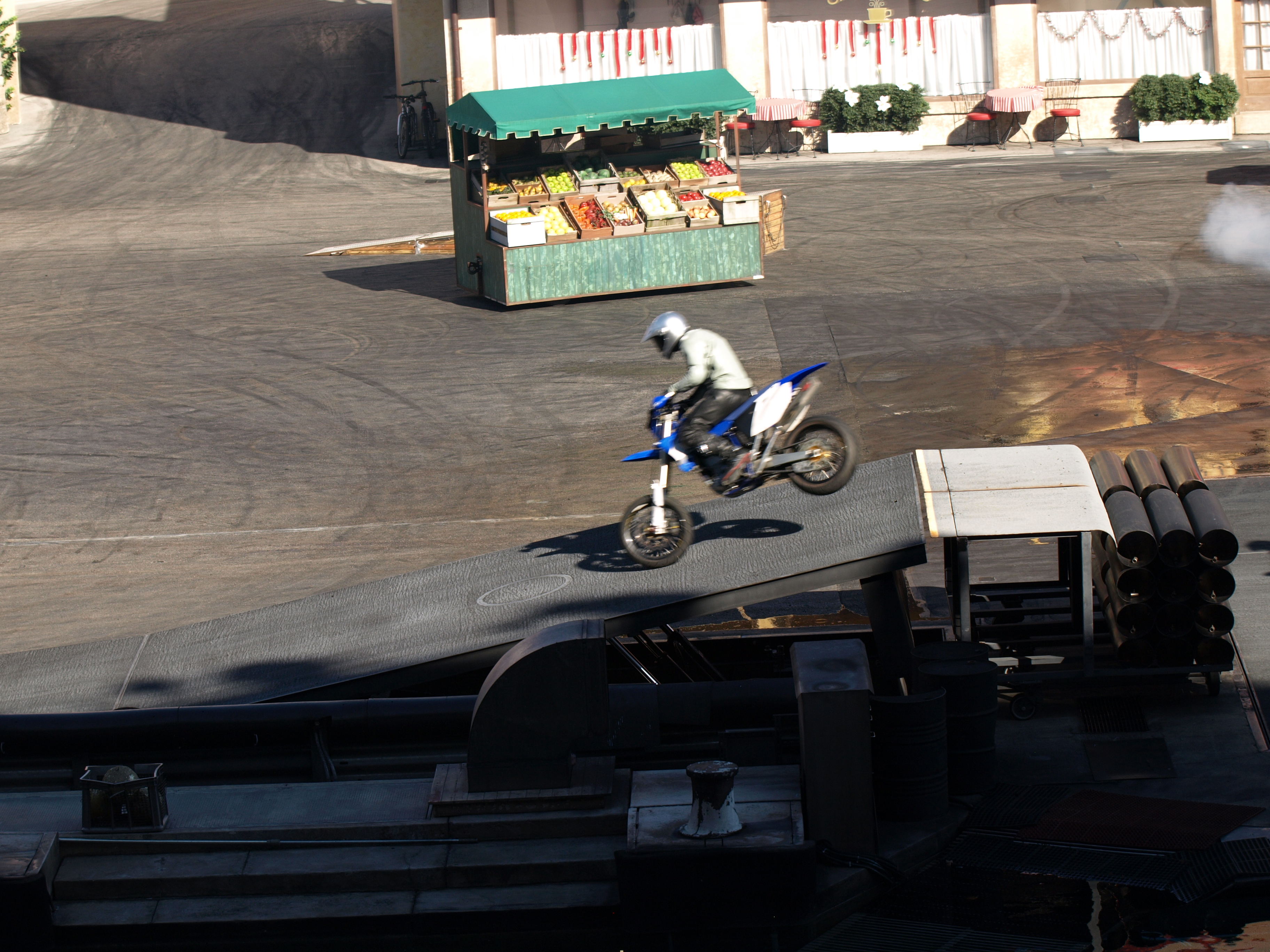 Picture #13: Lights, Motors, Action! Extreme Stunt Show #26 Small: 640x526, 87,631 bytes (86K), (html file) Large: 2560x1920, 3,311,808 bytes (3.2M), (html file) Copyright, Michael Meissner 2007, All rights reserved Olympus E-1 camera with Olympus 14-54mm f/2.8-3.5 lens f/5.6, ISO 100, 1/250 sec, 31.0mm, auto mode, SHQ, matrix metering, bias 0.3, +2 sharpening 35mm equivalent focal length 62.0mm Taken by Michael Meissner on December 05, 2007 13:44:27 Last modified on December 05, 2007 at 12:44 |