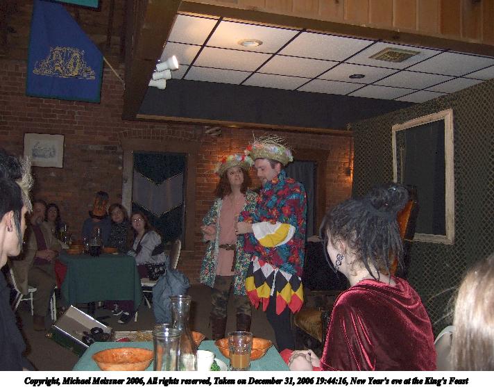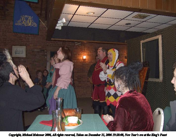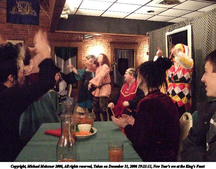 Picture #2: New Year's eve at the King's Feast #2 Thumb: 356x267, 26,520 bytes (26K) Small: 712x557, 79,388 bytes (78K), (html file) Copyright, Michael Meissner 2006, All rights reserved Fujifilm F30 f/2.8, ISO 100, flash, 1/60 sec, 8.0mm, auto mode, program ae color, FINE, spot metering 35mm equivalent focal length 36.0mm Programs used: gimp Taken by Michael Meissner on December 31, 2006 19:28:08 Last modified on December 31, 2006 at 19:28 |