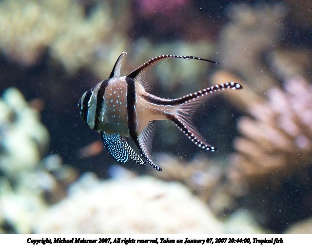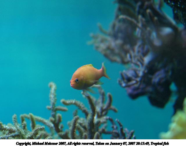 Picture #21: Tropical fish #5 Thumb: 320x240, 21,232 bytes (21K) Small: 640x503, 44,884 bytes (44K), (html file) Copyright, Michael Meissner 2007, All rights reserved Olympus E-1 camera with Olympus 50mm f/2.0 lens f/2.0, ISO 800, 1/40 sec, 50.0mm, auto mode, SHQ, matrix metering, +2 sharpening 35mm equivalent focal length 100.0mm Extra equipment used: noise ninja Taken by Michael Meissner on January 07, 2007 20:45:22 Last modified on January 07, 2007 at 20:45 This picture is one of my favorites. |