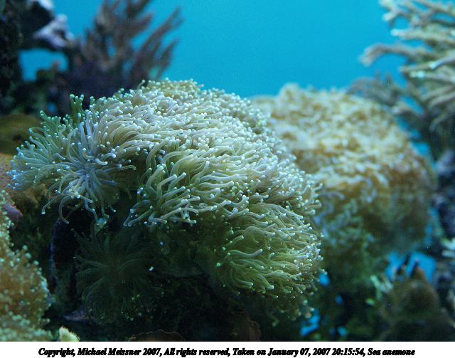Picture #2: Sea anemone Thumb: 320x240, 28,480 bytes (28K) Small: 640x503, 68,077 bytes (67K), (html file) Copyright, Michael Meissner 2007, All rights reserved Olympus E-1 camera with Olympus 50mm f/2.0 lens f/2.2, ISO 400, 1/125 sec, 50.0mm, auto mode, SHQ, matrix metering, +2 sharpening 35mm equivalent focal length 100.0mm Taken by Michael Meissner on January 07, 2007 20:15:54 Last modified on January 07, 2007 at 20:15 |