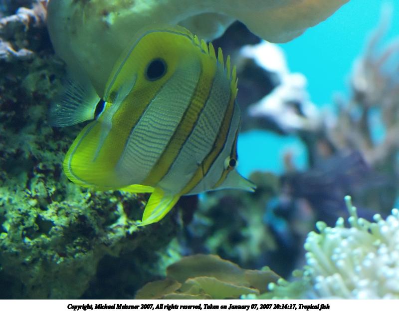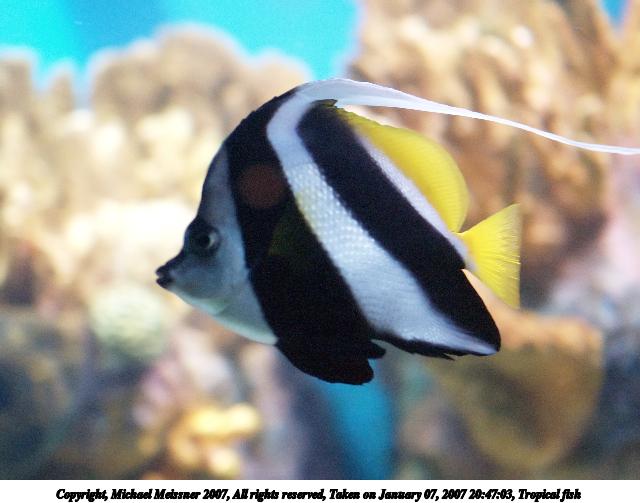Picture #4: Tropical fish #3 Thumb: 400x300, 24,231 bytes (24K) Small: 800x623, 52,264 bytes (52K), (html file) Copyright, Michael Meissner 2007, All rights reserved Olympus E-1 camera with Olympus 50mm f/2.0 lens f/3.2, ISO 800, 1/250 sec, 50.0mm, auto mode, SHQ, matrix metering, +2 sharpening 35mm equivalent focal length 100.0mm Extra equipment used: noise ninja Taken by Michael Meissner on January 07, 2007 20:17:14 Last modified on January 07, 2007 at 20:17 This picture is one of my favorites. |