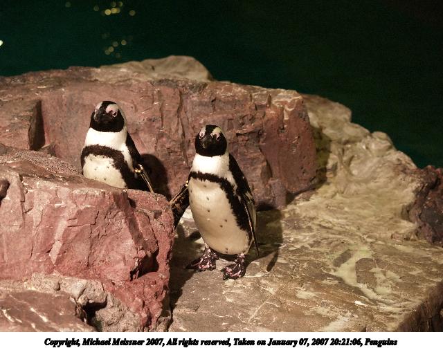 Picture #5: Penguins Thumb: 320x240, 30,058 bytes (30K) Small: 640x503, 83,685 bytes (82K), (html file) Copyright, Michael Meissner 2007, All rights reserved Olympus E-1 camera with Olympus 50-200mm f/2.8-3.5 lens f/2.8, ISO 800, 1/80 sec, 72.0mm, auto mode, SHQ, matrix metering, +2 sharpening 35mm equivalent focal length 144.0mm Extra equipment used: noise ninja Taken by Michael Meissner on January 07, 2007 20:20:57 Last modified on January 07, 2007 at 20:20 |