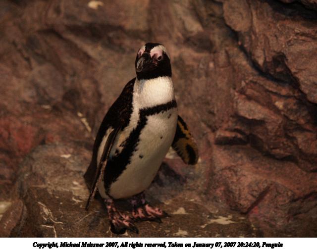 Picture #6: Penguin Thumb: 320x240, 29,428 bytes (29K) Small: 640x503, 77,795 bytes (76K), (html file) Copyright, Michael Meissner 2007, All rights reserved Olympus E-1 camera with Olympus 50-200mm f/2.8-3.5 lens f/2.8, ISO 800, 1/160 sec, 72.0mm, auto mode, SHQ, matrix metering, +2 sharpening 35mm equivalent focal length 144.0mm Extra equipment used: noise ninja Taken by Michael Meissner on January 07, 2007 20:20:59 Last modified on January 07, 2007 at 20:20 |