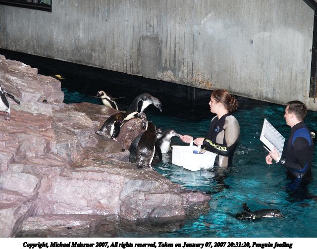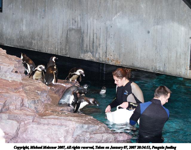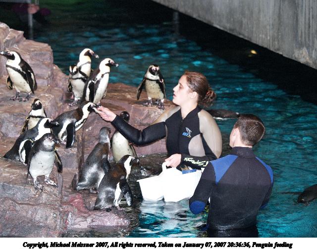 Picture #12: Penguin feeding #4 Thumb: 320x240, 28,398 bytes (28K) Small: 640x503, 79,038 bytes (78K), (html file) Copyright, Michael Meissner 2007, All rights reserved Olympus E-1 camera with Olympus 14-54mm f/2.8-3.5 lens f/3.4, ISO 200, FL-50 flash, 1/100 sec, 50.0mm, auto mode, SHQ, matrix metering, +2 sharpening 35mm equivalent focal length 100.0mm Extra equipment used: FL-50 flash Taken by Michael Meissner on January 07, 2007 20:31:20 Last modified on January 07, 2007 at 20:31 |