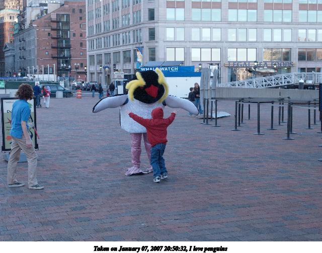 Picture #24: I love penguins Thumb: 320x240, 29,946 bytes (30K) Small: 640x503, 75,124 bytes (74K), (html file) Olympus E-1 camera with Olympus 14-54mm f/2.8-3.5 lens f/5.6, ISO 400, 1/200 sec, 31.0mm, auto mode, SHQ, matrix metering, +2 sharpening 35mm equivalent focal length 62.0mm Taken by Michael Meissner on January 07, 2007 20:50:32 Last modified on January 07, 2007 at 20:50 |