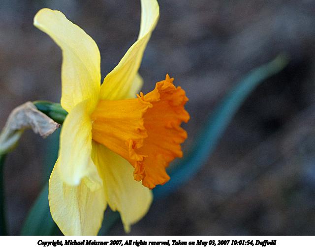 Picture #3: Daffodil #3 Thumb: 320x240, 21,802 bytes (22K) Small: 640x503, 46,232 bytes (46K), (html file) Copyright, Michael Meissner 2007, All rights reserved Olympus E-1 camera with Olympus 50mm f/2.0 lens f/3.5, ISO 400, 1/400 sec, 50.0mm, auto mode, SHQ, matrix metering, +2 sharpening 35mm equivalent focal length 100.0mm Taken by Michael Meissner on May 03, 2007 10:03:14 Last modified on May 03, 2007 at 10:03 |