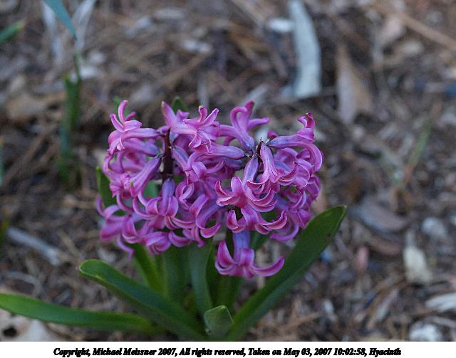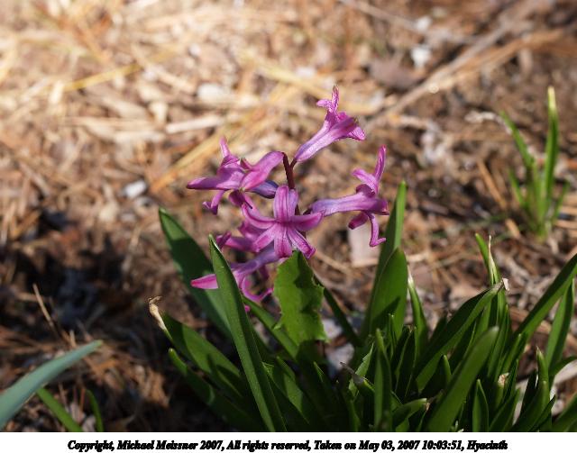 Picture #13: Hyacinth #3 Thumb: 240x320, 34,086 bytes (34K) Small: 480x686, 65,053 bytes (64K), (html file) Copyright, Michael Meissner 2007, All rights reserved Olympus E-1 camera with Olympus 50mm f/2.0 lens f/4.5, ISO 100, 1/500 sec, 50.0mm, auto mode, SHQ, matrix metering, +2 sharpening 35mm equivalent focal length 100.0mm Programs used: rotate Taken by Michael Meissner on May 03, 2007 10:04:21 Last modified on May 03, 2007 at 10:04 |