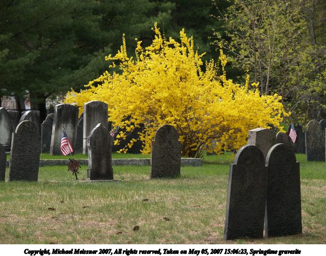 Picture #1: Springtime gravesite Thumb: 320x240, 31,796 bytes (32K) Small: 640x503, 96,449 bytes (95K), (html file) Copyright, Michael Meissner 2007, All rights reserved Olympus E-1 camera with Olympus 50-200mm f/2.8-3.5 lens f/5.0, ISO 400, 1/640 sec, 104.0mm, auto mode, SHQ, matrix metering, +2 sharpening 35mm equivalent focal length 208.0mm Taken by Michael Meissner on May 05, 2007 15:06:23 Last modified on May 05, 2007 at 15:06 |