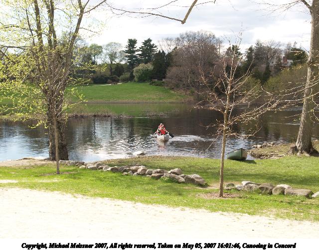 Picture #3: Canoeing in Concord Thumb: 320x240, 29,994 bytes (30K) Small: 640x503, 97,111 bytes (95K), (html file) Copyright, Michael Meissner 2007, All rights reserved Olympus E-1 camera with Olympus 14-54mm f/2.8-3.5 lens f/5.6, ISO 100, 1/200 sec, 27.0mm, auto mode, SHQ, matrix metering, +2 sharpening 35mm equivalent focal length 54.0mm Taken by Michael Meissner on May 05, 2007 16:01:46 Last modified on May 05, 2007 at 16:01 |