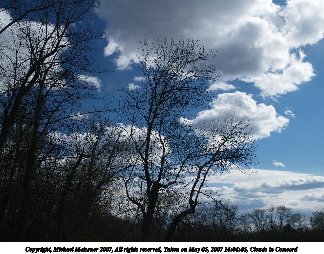 Picture #3: Clouds in Concord Thumb: 320x240, 28,727 bytes (29K) Small: 640x503, 90,467 bytes (89K), (html file) Copyright, Michael Meissner 2007, All rights reserved Olympus E-1 camera with Olympus 14-54mm f/2.8-3.5 lens f/8.0, ISO 200, 1/320 sec, 19.0mm, auto mode, SHQ, matrix metering, +2 sharpening 35mm equivalent focal length 38.0mm Extra equipment used: Polarizer Taken by Michael Meissner on May 05, 2007 16:04:45 Last modified on May 05, 2007 at 16:04 |