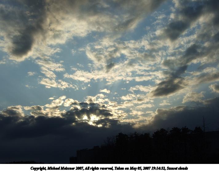 Picture #5: Sunset clouds #3 Thumb: 356x267, 21,368 bytes (21K) Small: 712x557, 59,542 bytes (59K), (html file) Copyright, Michael Meissner 2007, All rights reserved Fujifilm F30 f/7.1, ISO 100, 1/550 sec, 14.1mm, auto mode, program ae color, FINE, average metering 35mm equivalent focal length 64.0mm Taken by Michael Meissner on May 05, 2007 19:15:13 Last modified on May 05, 2007 at 20:15 |