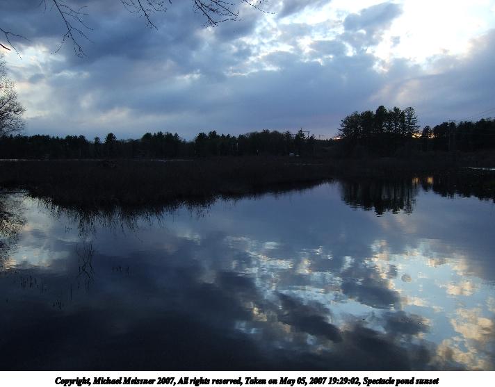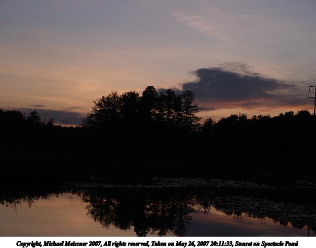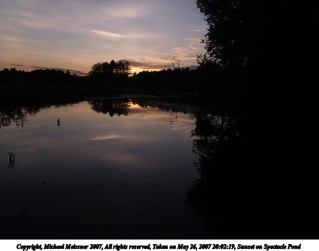 Picture #10: Sunset on Spectacle Pond #2 Thumb: 320x240, 16,854 bytes (17K) Small: 640x503, 35,123 bytes (35K), (html file) Copyright, Michael Meissner 2007, All rights reserved Olympus E-1 camera with Olympus 11-22mm f/2.8-3.5 lens f/7.1, ISO 100, 1/200 sec, 15.0mm, auto mode, SHQ, matrix metering, bias -1.3, +2 sharpening, Exposure bracketing (shot 2) 35mm equivalent focal length 30.0mm Taken by Michael Meissner on May 26, 2007 20:02:19 Last modified on May 26, 2007 at 20:02 |