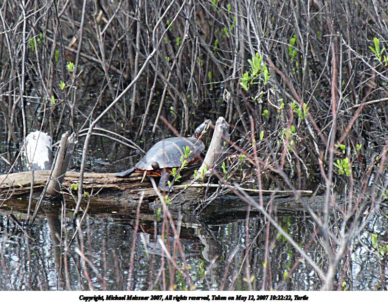 Picture #3: Turtle #3 Thumb: 320x240, 40,538 bytes (40K) Small: 640x503, 125,309 bytes (123K), (html file) Copyright, Michael Meissner 2007, All rights reserved Olympus E-1 camera with Olympus 50-200mm f/2.8-3.5 lens and Olympus EC-14 (1.4x) f/7.1, ISO 400, 1/400 sec, 283.0mm, auto mode, SHQ, matrix metering, +2 sharpening 35mm equivalent focal length 567.0mm, EC-14 Taken by Michael Meissner on May 20, 2007 16:35:21 Last modified on May 20, 2007 at 16:35 |