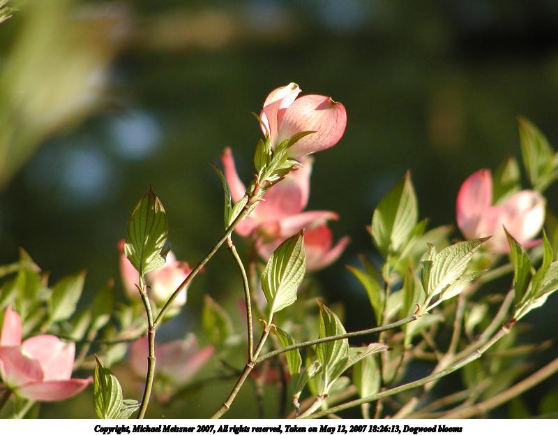 Picture #4: Dogwood blossoms #2 Thumb: 400x300, 23,655 bytes (24K) Small: 800x623, 68,200 bytes (67K), (html file) Copyright, Michael Meissner 2007, All rights reserved Olympus C-2100UZ camera f/3.5, ISO 100, 1/100 sec, 70.0mm, auto mode, SHQ, cloudy, matrix metering 35mm equivalent focal length 388.0mm Taken by Michael Meissner on May 17, 2007 10:46:56 Last modified on May 17, 2007 at 10:46 |