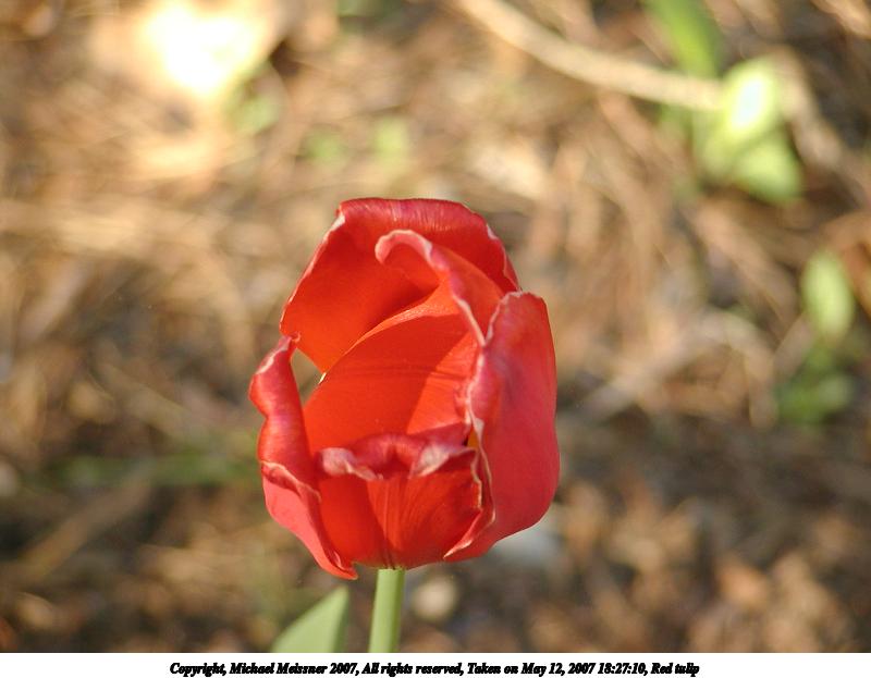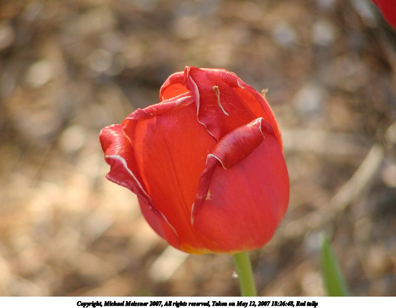 Picture #2: Red tulip #2 Thumb: 400x300, 22,041 bytes (22K) Small: 800x623, 51,430 bytes (51K), (html file) Copyright, Michael Meissner 2007, All rights reserved Olympus C-2100UZ camera f/2.8, ISO 100, 1/100 sec, 37.4mm, auto mode, SHQ, cloudy, matrix metering, macro 35mm equivalent focal length 208.0mm Taken by Michael Meissner on May 12, 2007 18:27:10 Last modified on May 12, 2007 at 18:27 |