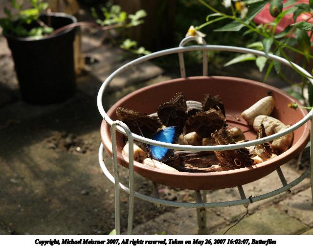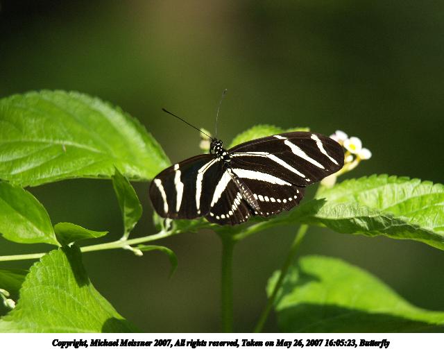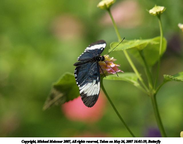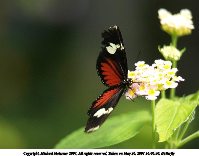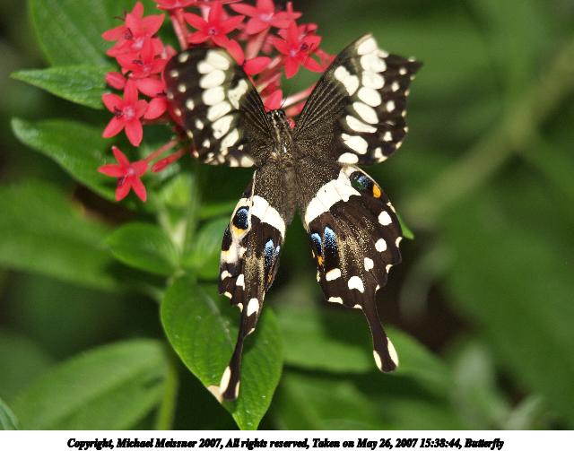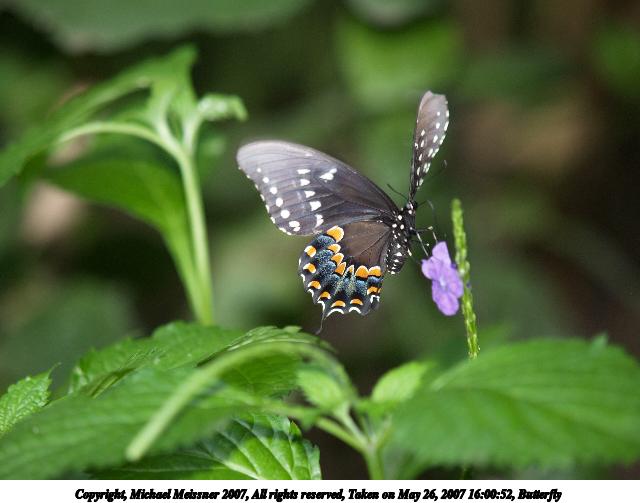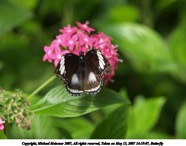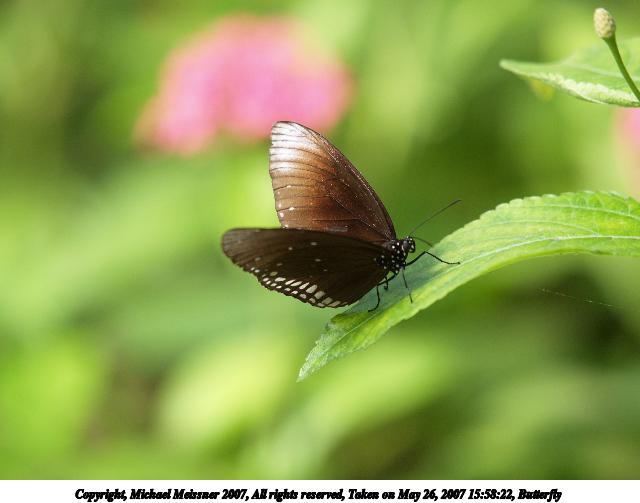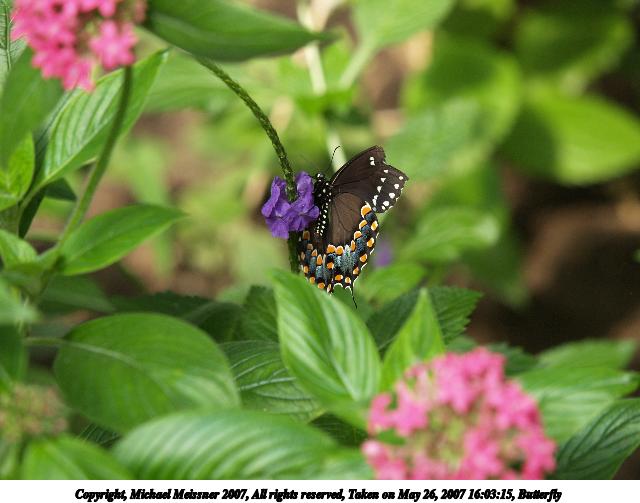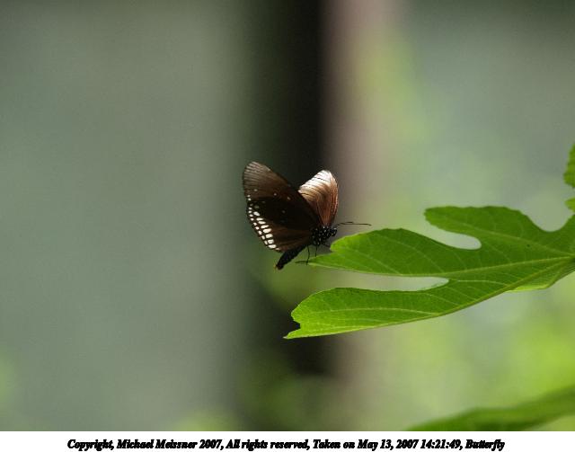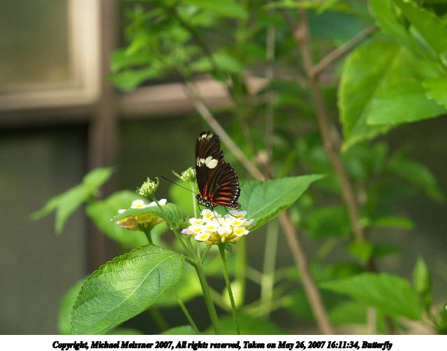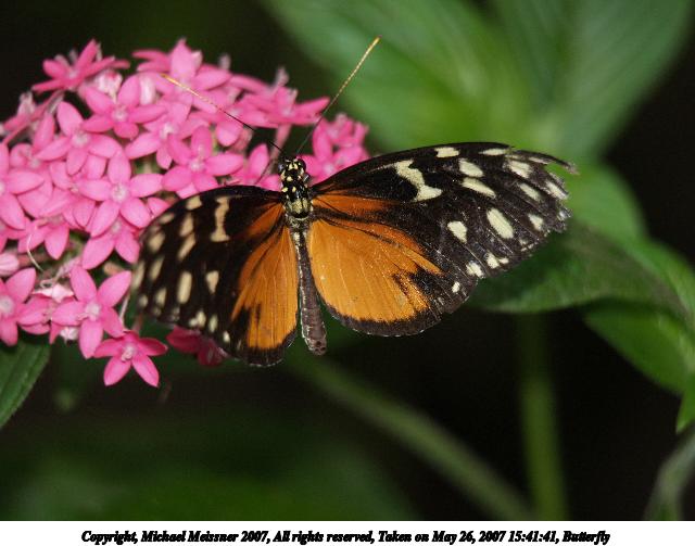 Picture #9: Butterfly #8 Thumb: 320x240, 24,999 bytes (25K) Small: 640x503, 53,875 bytes (53K), (html file) Copyright, Michael Meissner 2007, All rights reserved Olympus E-1 camera with Olympus 50-200mm f/2.8-3.5 lens and Olympus EX-25 (macro) f/3.5, ISO 200, FL-50 flash, 1/160 sec, 200.0mm, auto mode, SHQ, matrix metering, +2 sharpening 35mm equivalent focal length 401.0mm, EX-25 Extra equipment used: FL-50 flash Taken by Michael Meissner on May 26, 2007 15:41:41 Last modified on May 26, 2007 at 15:41 |
