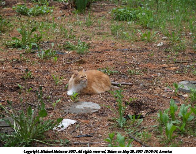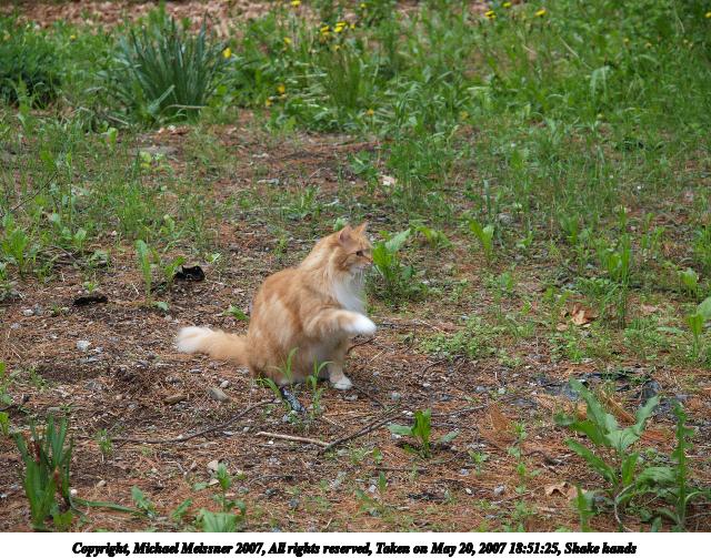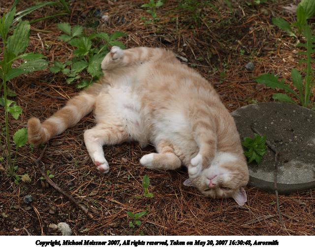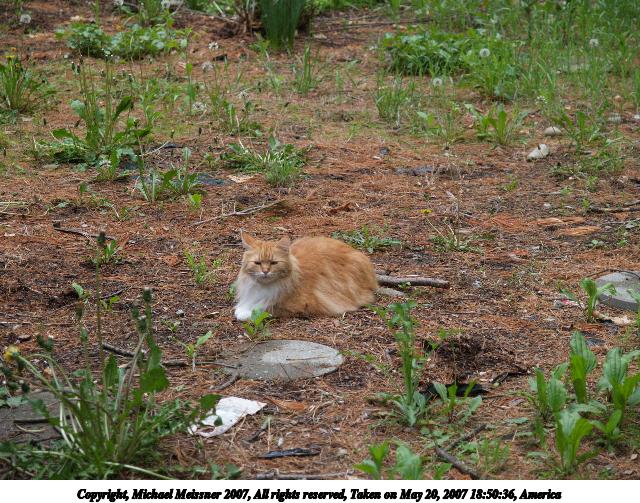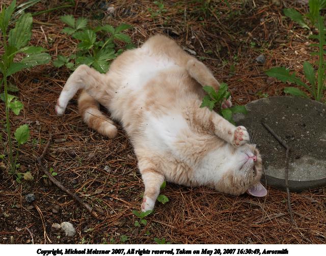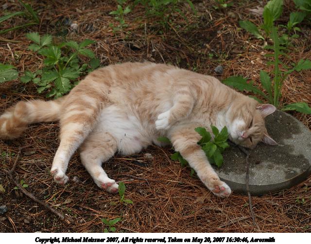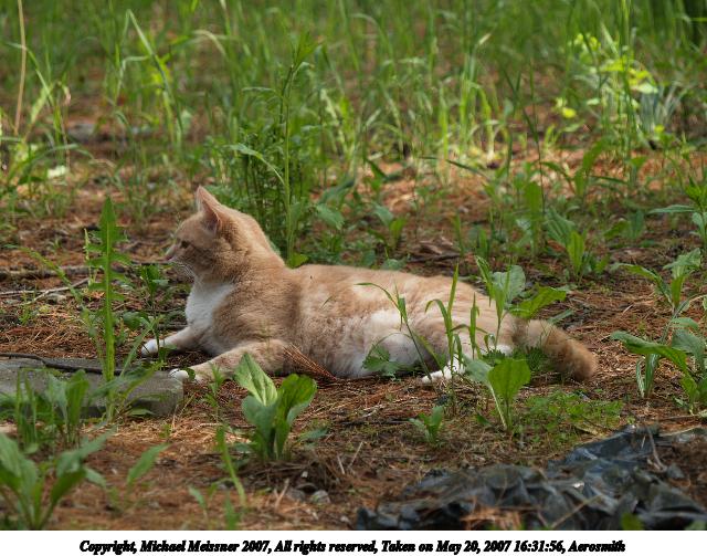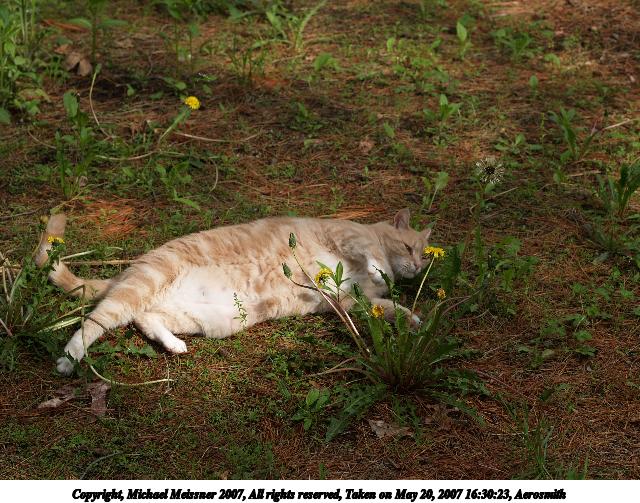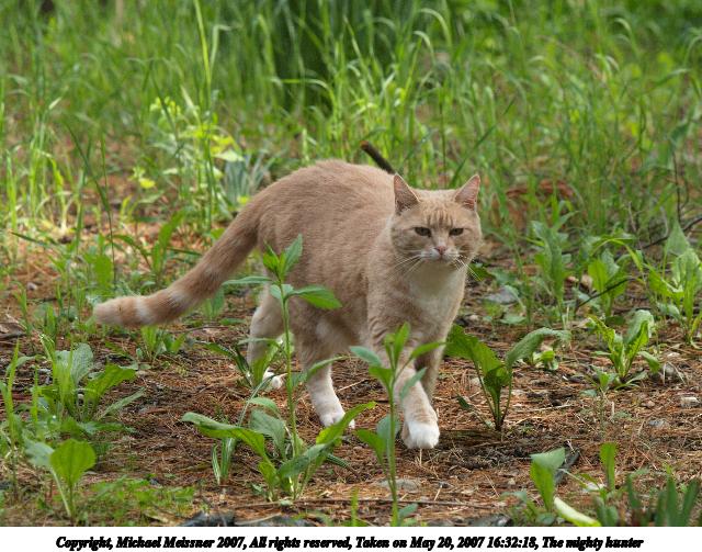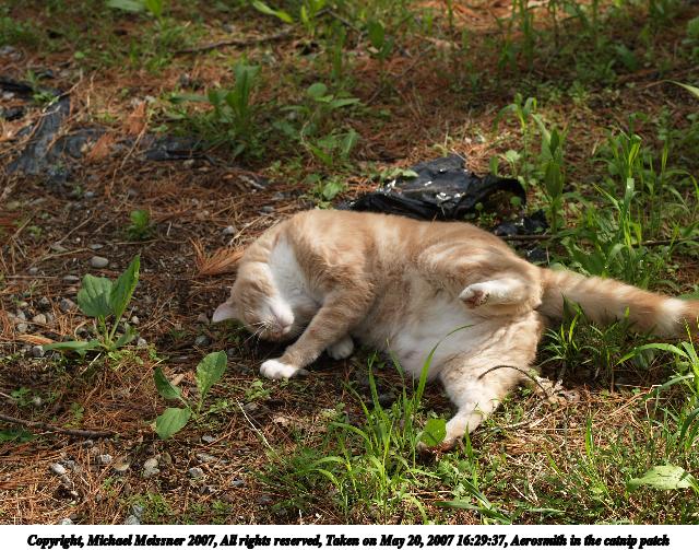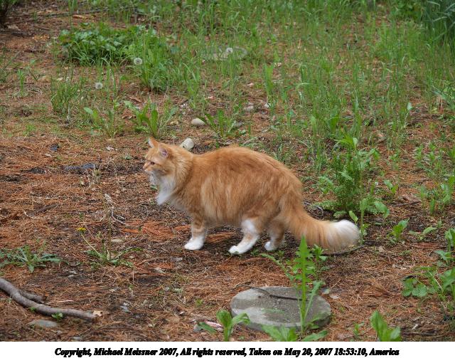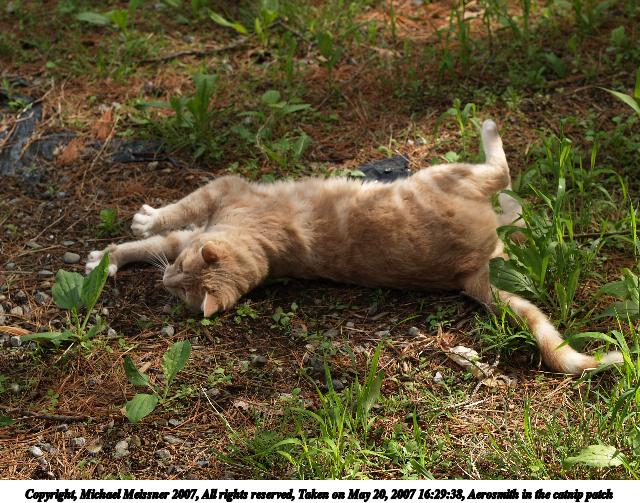 Picture #5: Aerosmith in the catnip patch #2 Thumb: 320x240, 36,339 bytes (36K) Small: 640x503, 109,610 bytes (108K), (html file) Copyright, Michael Meissner 2007, All rights reserved Olympus E-1 camera with Olympus 50mm f/2.0 lens f/3.5, ISO 100, 1/400 sec, 50.0mm, auto mode, SHQ, matrix metering, +2 sharpening 35mm equivalent focal length 100.0mm Taken by Michael Meissner on May 20, 2007 16:29:38 Last modified on May 20, 2007 at 16:29 |
