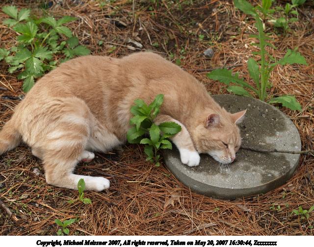 Picture #8: Zzzzzzzzz Thumb: 320x240, 34,323 bytes (34K) Small: 640x503, 100,233 bytes (98K), (html file) Copyright, Michael Meissner 2007, All rights reserved Olympus E-1 camera with Olympus 50mm f/2.0 lens f/3.2, ISO 100, 1/320 sec, 50.0mm, auto mode, SHQ, matrix metering, +2 sharpening 35mm equivalent focal length 100.0mm Taken by Michael Meissner on May 20, 2007 16:30:44 Last modified on May 20, 2007 at 16:30 |