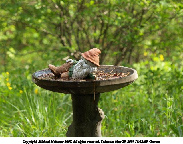 Picture #7: Gnome Thumb: 320x240, 30,409 bytes (30K) Small: 640x503, 70,168 bytes (69K), (html file) Copyright, Michael Meissner 2007, All rights reserved Olympus E-1 camera with Olympus 50-200mm f/2.8-3.5 lens and Olympus EC-14 (1.4x) f/5.6, ISO 400, 1/250 sec, 224.0mm, auto mode, SHQ, matrix metering, +2 sharpening 35mm equivalent focal length 449.0mm, EC-14 Taken by Michael Meissner on May 20, 2007 16:32:09 Last modified on May 20, 2007 at 16:32 |