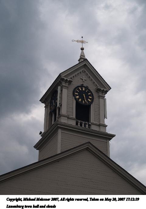 Picture #9: Lunenburg town hall and clouds Thumb: 240x320, 20,201 bytes (20K) Small: 480x686, 45,152 bytes (45K), (html file) Copyright, Michael Meissner 2007, All rights reserved Olympus E-1 camera with Olympus 14-54mm f/2.8-3.5 lens f/4.5, ISO 100, 1/160 sec, 35.0mm, auto mode, SHQ, matrix metering, +2 sharpening 35mm equivalent focal length 70.0mm Programs used: rotate Taken by Michael Meissner on May 20, 2007 17:12:39 Last modified on May 20, 2007 at 17:12 |