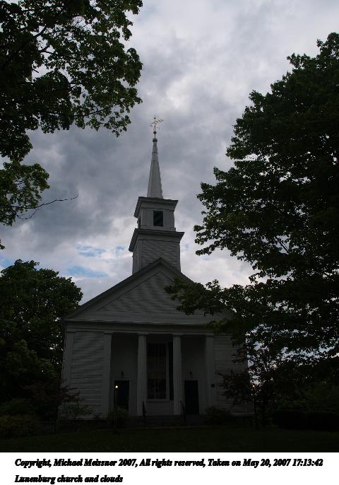 Picture #10: Lunenburg church and clouds Thumb: 240x320, 27,387 bytes (27K) Small: 480x686, 74,332 bytes (73K), (html file) Copyright, Michael Meissner 2007, All rights reserved Olympus E-1 camera with Olympus 14-54mm f/2.8-3.5 lens f/5.0, ISO 100, 1/125 sec, 14.0mm, auto mode, SHQ, matrix metering, +2 sharpening, Exposure bracketing (shot 1) 35mm equivalent focal length 28.0mm Programs used: rotate Taken by Michael Meissner on May 20, 2007 17:13:42 Last modified on May 20, 2007 at 17:13 |