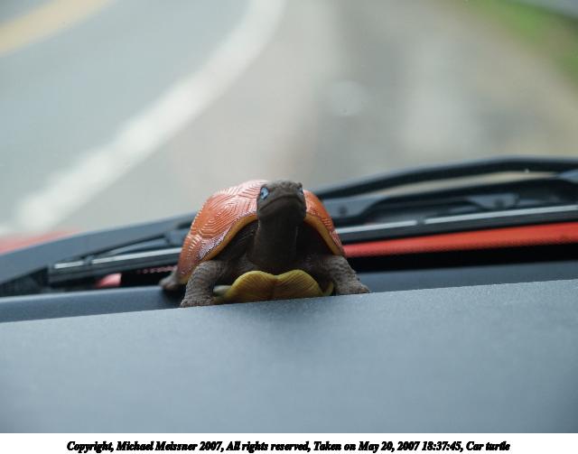 Picture #9: Car turtle Thumb: 320x240, 18,482 bytes (19K) Small: 640x503, 35,635 bytes (35K), (html file) Copyright, Michael Meissner 2007, All rights reserved Olympus E-1 camera with Olympus 14-54mm f/2.8-3.5 lens f/3.5, ISO 100, 1/50 sec, 54.0mm, auto mode, SHQ, matrix metering, +2 sharpening 35mm equivalent focal length 108.0mm Taken by Michael Meissner on May 20, 2007 18:37:45 Last modified on May 20, 2007 at 18:37 |