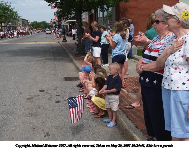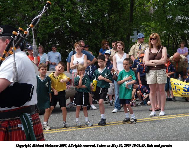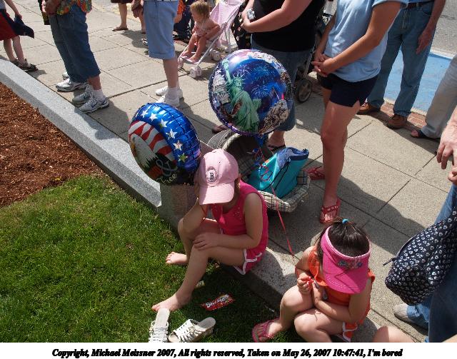 Picture #28: Kids and parades Thumb: 320x240, 33,360 bytes (33K) Small: 640x503, 91,494 bytes (90K), (html file) Copyright, Michael Meissner 2007, All rights reserved Olympus E-1 camera with Olympus 14-54mm f/2.8-3.5 lens f/5.6, ISO 100, 1/320 sec, 54.0mm, auto mode, SHQ, matrix metering, +2 sharpening 35mm equivalent focal length 108.0mm Taken by Michael Meissner on May 26, 2007 10:51:59 Last modified on May 26, 2007 at 10:51 |
