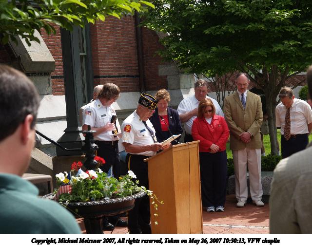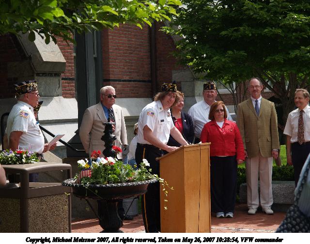 Picture #16: VFW commander Thumb: 320x240, 30,812 bytes (31K) Small: 640x503, 82,514 bytes (81K), (html file) Copyright, Michael Meissner 2007, All rights reserved Olympus E-1 camera with Olympus 14-54mm f/2.8-3.5 lens f/5.6, ISO 100, 1/320 sec, 54.0mm, auto mode, SHQ, matrix metering, +2 sharpening 35mm equivalent focal length 108.0mm Taken by Michael Meissner on May 26, 2007 10:28:54 Last modified on May 26, 2007 at 10:28 |