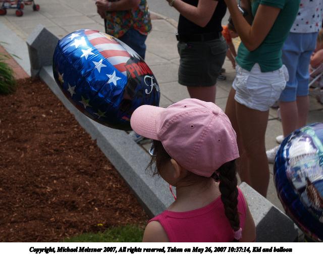 Picture #20: Kid and balloon Thumb: 320x240, 27,314 bytes (27K) Small: 640x503, 61,605 bytes (61K), (html file) Copyright, Michael Meissner 2007, All rights reserved Olympus E-1 camera with Olympus 14-54mm f/2.8-3.5 lens f/6.3, ISO 100, 1/250 sec, 27.0mm, auto mode, SHQ, matrix metering, +2 sharpening 35mm equivalent focal length 54.0mm Taken by Michael Meissner on May 26, 2007 10:37:14 Last modified on May 26, 2007 at 10:37 |