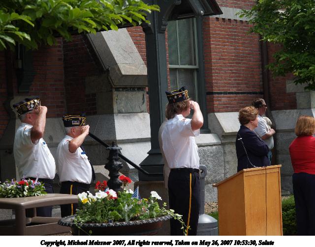 Picture #30: Salute Thumb: 320x240, 29,111 bytes (29K) Small: 640x503, 74,786 bytes (74K), (html file) Copyright, Michael Meissner 2007, All rights reserved Olympus E-1 camera with Olympus 14-54mm f/2.8-3.5 lens f/5.6, ISO 100, 1/250 sec, 54.0mm, auto mode, SHQ, matrix metering, +2 sharpening 35mm equivalent focal length 108.0mm Taken by Michael Meissner on May 26, 2007 10:53:30 Last modified on May 26, 2007 at 10:53 |