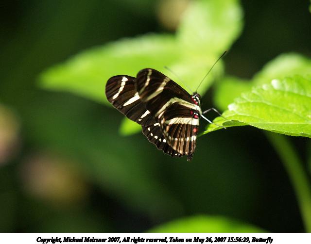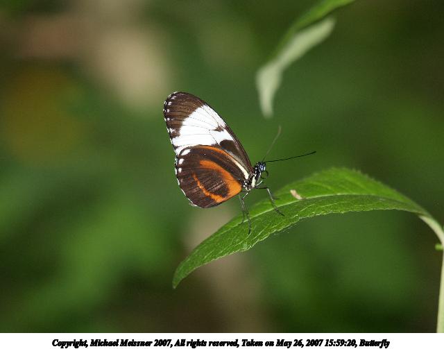 Picture #28: Butterfly #22 Thumb: 320x240, 21,892 bytes (22K) Small: 640x503, 45,583 bytes (45K), (html file) Copyright, Michael Meissner 2007, All rights reserved Olympus E-1 camera with Olympus 50-200mm f/2.8-3.5 lens f/4.0, ISO 200, 1/250 sec, 200.0mm, auto mode, SHQ, matrix metering, +2 sharpening 35mm equivalent focal length 401.0mm Taken by Michael Meissner on May 26, 2007 16:04:20 Last modified on May 26, 2007 at 16:04 This picture is one of my favorites. |