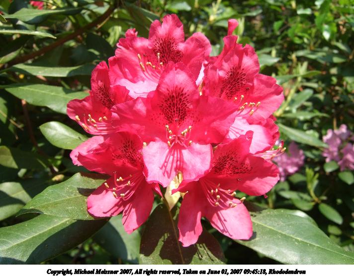 Picture #10: Andover Rhododendron #2 Thumb: 320x240, 38,973 bytes (39K) Small: 640x503, 100,896 bytes (99K), (html file) Copyright, Michael Meissner 2007, All rights reserved Olympus E-1 camera with Olympus 14-54mm f/2.8-3.5 lens f/5.0, ISO 100, 1/160 sec, 37.0mm, auto mode, SHQ, matrix metering, +2 sharpening 35mm equivalent focal length 74.0mm Taken by Michael Meissner on June 02, 2007 15:28:51 Last modified on June 02, 2007 at 15:28 |