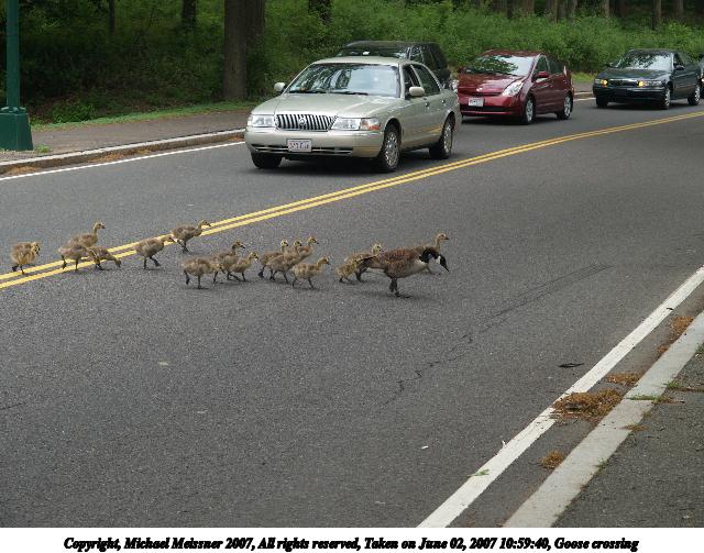 Picture #1: Goose crossing Thumb: 320x240, 24,296 bytes (24K) Small: 640x503, 77,421 bytes (76K), (html file) Copyright, Michael Meissner 2007, All rights reserved Olympus E-1 camera with Olympus 14-54mm f/2.8-3.5 lens f/4.5, ISO 100, 1/200 sec, 45.0mm, auto mode, SHQ, matrix metering, +2 sharpening 35mm equivalent focal length 90.0mm Taken by Michael Meissner on June 02, 2007 10:59:40 Last modified on June 02, 2007 at 10:59 This picture is one of my favorites. |