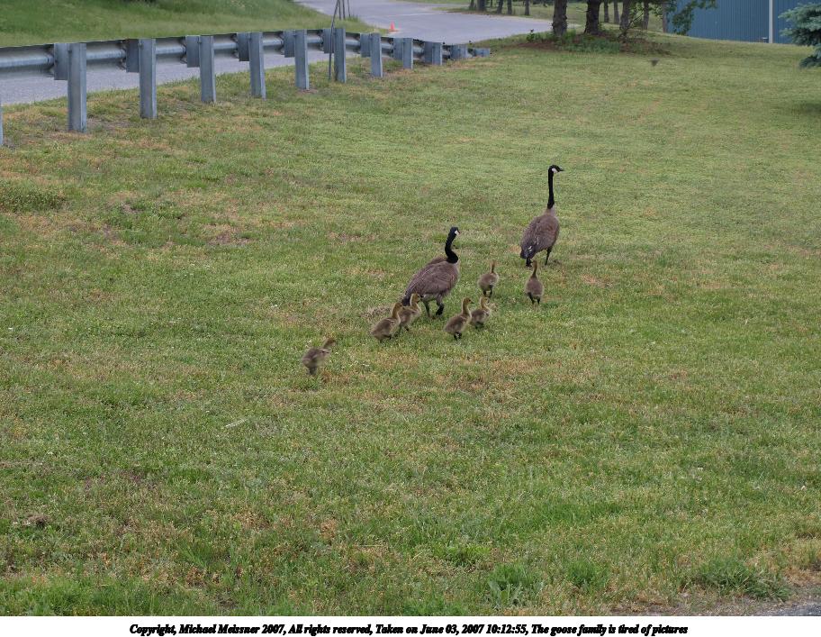 Picture #12: Goose family Thumb: 456x342, 42,020 bytes (42K) Small: 912x707, 155,072 bytes (152K), (html file) Copyright, Michael Meissner 2007, All rights reserved Olympus E-510 camera with Olympus 14-42mm f/3.5-5.6 lens f/5.6, ISO 100, 1/100 sec, 42.0mm, auto mode, natural color, matrix metering, noise filter low 35mm equivalent focal length 84.0mm Taken by Michael Meissner on June 03, 2007 10:12:24 Last modified on June 06, 2007 at 00:09 |