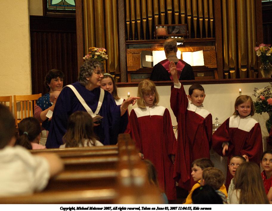 Picture #2: Kids sermon Thumb: 456x342, 43,023 bytes (43K) Small: 912x707, 106,515 bytes (105K), (html file) Copyright, Michael Meissner 2007, All rights reserved Olympus E-510 camera with Olympus 50mm f/2.0 lens f/2.0, ISO 800, 1/100 sec, 50.0mm, auto mode, natural color, SHQ, matrix metering, image stabilization, noise filter low 35mm equivalent focal length 100.0mm Taken by Michael Meissner on June 03, 2007 11:04:55 Last modified on June 03, 2007 at 11:04 |