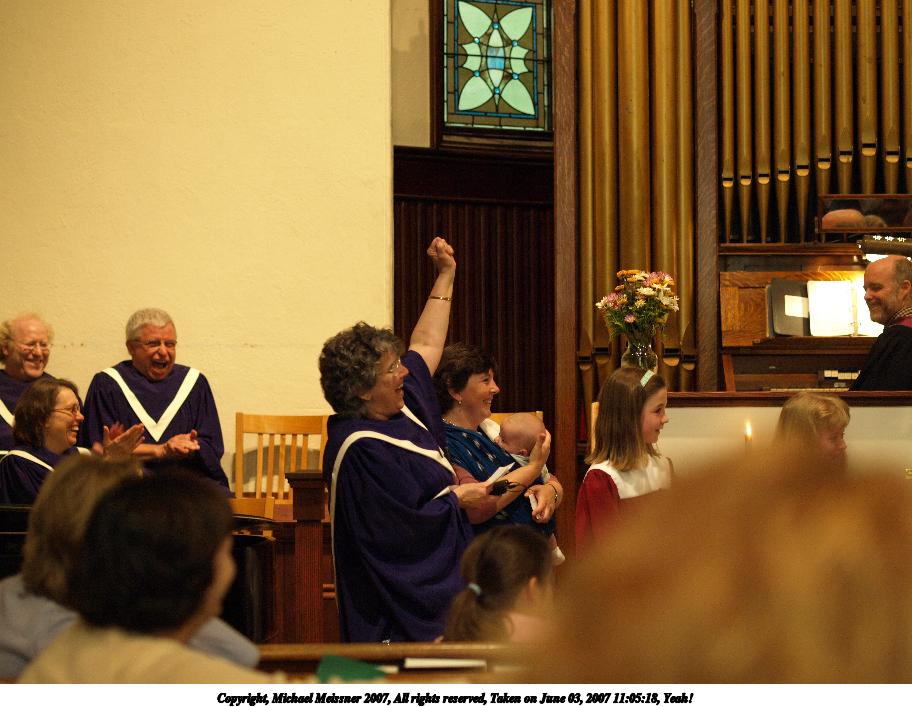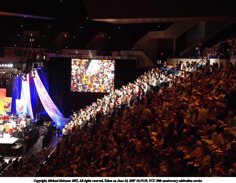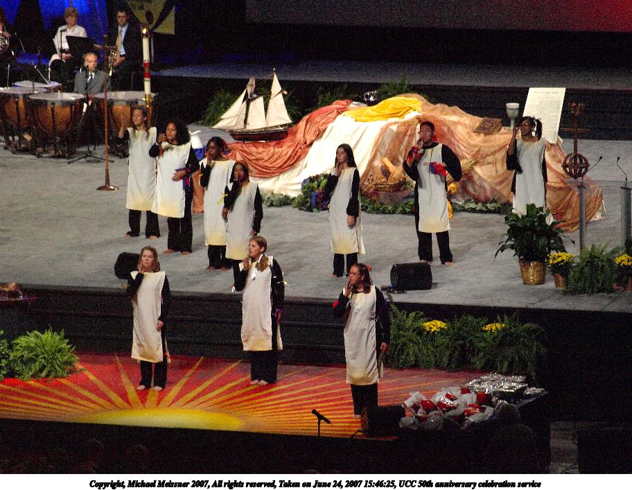 Picture #12: UCC 50th anniversary celebration service #12 Thumb: 456x342, 63,541 bytes (63K) Small: 912x707, 149,993 bytes (147K), (html file) Copyright, Michael Meissner 2007, All rights reserved Olympus E-510 camera with Olympus 50mm f/2.0 lens f/2.0, ISO 400, 1/60 sec, 50.0mm, auto mode, vivid color, high key, SHQ, matrix metering, -2 sharpening, image stabilization 35mm equivalent focal length 100.0mm Taken by Michael Meissner on June 24, 2007 16:02:23 Last modified on June 24, 2007 at 16:02 This picture is one of my favorites. |