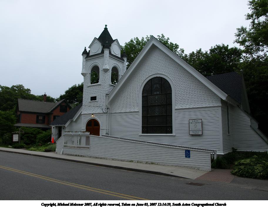 Picture #13: South Acton Congregational Church Thumb: 456x342, 35,219 bytes (35K) Small: 912x707, 111,671 bytes (110K), (html file) Copyright, Michael Meissner 2007, All rights reserved Olympus E-510 camera with Olympus 14-42mm f/3.5-5.6 lens f/6.3, ISO 100, 1/100 sec, 14.0mm, auto mode, natural color, SHQ, matrix metering, image stabilization, noise filter low 35mm equivalent focal length 28.0mm Taken by Michael Meissner on June 03, 2007 12:14:39 Last modified on June 03, 2007 at 12:14 |