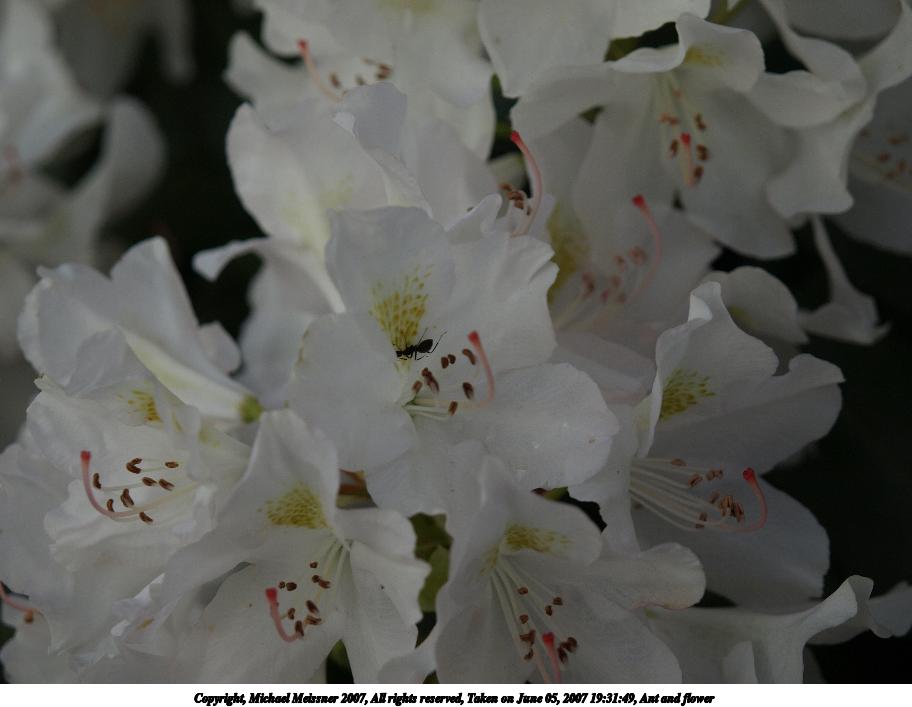 Picture #1: Ant and flower Thumb: 456x342, 28,601 bytes (28K) Small: 912x707, 60,417 bytes (60K), (html file) Copyright, Michael Meissner 2007, All rights reserved Olympus E-510 camera with Olympus 14-54mm f/2.8-3.5 lens f/4.5, ISO 100, 1/200 sec, 54.0mm, auto mode, natural color, SHQ, matrix metering, image stabilization, noise filter low 35mm equivalent focal length 108.0mm Taken by Michael Meissner on June 05, 2007 19:31:49 Last modified on June 05, 2007 at 19:31 |