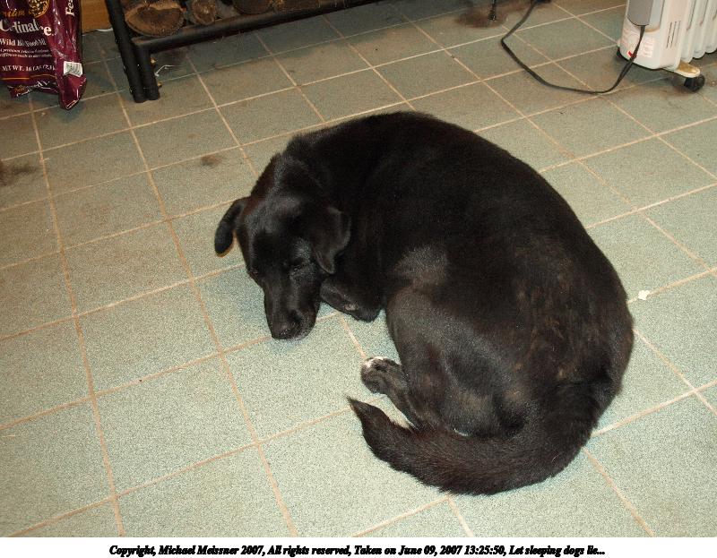 Picture #5: Let sleeping dogs lie... Thumb: 400x300, 34,164 bytes (34K) Small: 800x623, 112,938 bytes (111K), (html file) Copyright, Michael Meissner 2007, All rights reserved Olympus E-510 camera with Olympus 14-54mm f/2.8-3.5 lens f/2.8, ISO 800, flash (+0.7 flash compensation), 1/30 sec, 17.0mm, auto mode, natural color, SHQ, matrix metering, image stabilization, noise reduction, noise filter low 35mm equivalent focal length 34.0mm Programs used: gimp Taken by Michael Meissner on June 09, 2007 13:25:50 Last modified on June 09, 2007 at 13:25 |