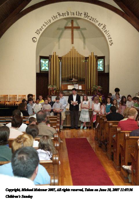 Picture #18: Children's Sunday Thumb: 320x240, 38,320 bytes (38K) Small: 640x503, 80,014 bytes (79K), (html file) Copyright, Michael Meissner 2007, All rights reserved Olympus E-1 camera with Olympus 14-54mm f/2.8-3.5 lens f/3.2, ISO 800, 1/50 sec, 29.0mm, auto mode, SHQ, manual wb, matrix metering, +2 sharpening 35mm equivalent focal length 58.0mm Taken by Michael Meissner on June 10, 2007 11:07:25 Last modified on June 10, 2007 at 11:07 |