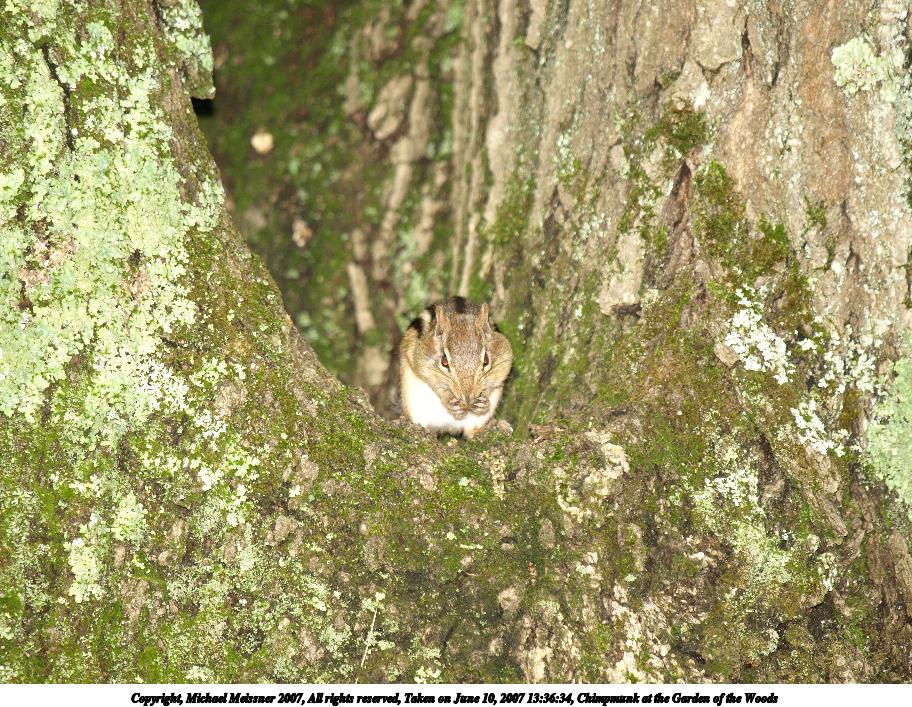 Picture #7: Chimpmunk at the Garden of the Woods Thumb: 456x342, 67,228 bytes (66K) Small: 912x707, 226,405 bytes (222K), (html file) Copyright, Michael Meissner 2007, All rights reserved Olympus E-510 camera with Olympus 50-200mm f/2.8-3.5 lens f/3.5, ISO 200, FL-50 flash, 1/180 sec, 200.0mm, auto mode, natural color, SHQ, matrix metering, image stabilization, noise reduction, noise filter low 35mm equivalent focal length 401.0mm Extra equipment used: FL-50 flash Taken by Michael Meissner on June 10, 2007 13:36:34 Last modified on June 10, 2007 at 13:36 |