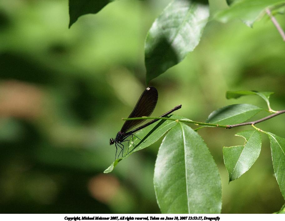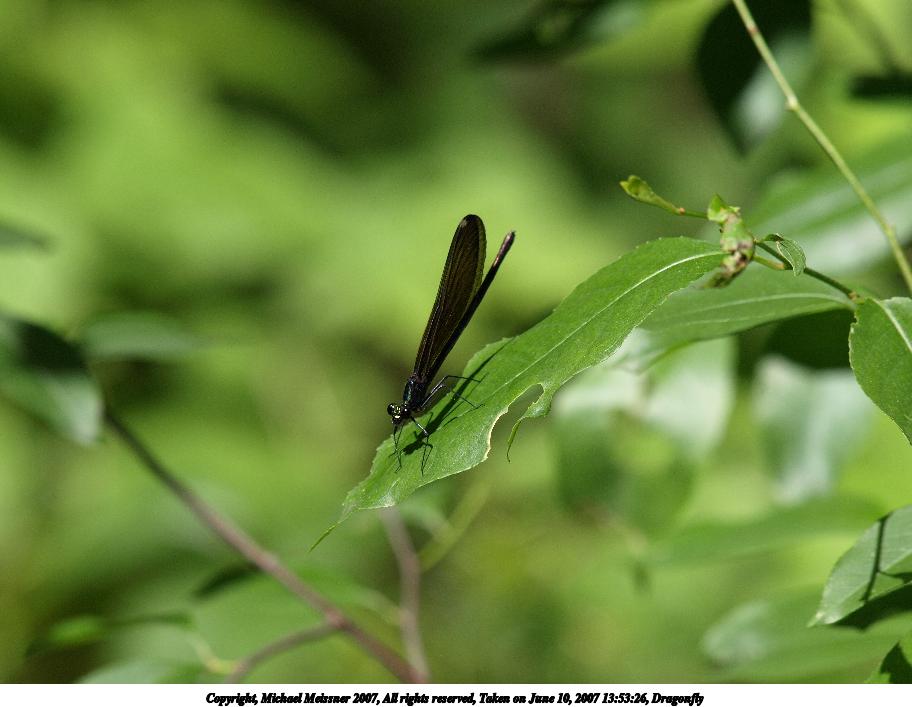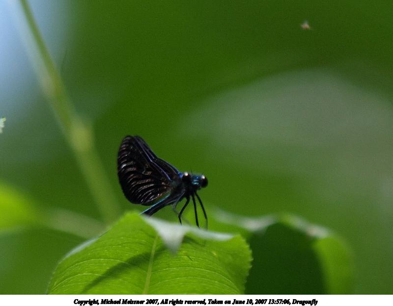 Picture #10: Dragonfly Thumb: 400x300, 71,697 bytes (71K) Small: 800x623, 219,379 bytes (215K), (html file) Copyright, Michael Meissner 2007, All rights reserved Olympus E-510 camera with Olympus 50mm f/2.0 lens f/6.3, ISO 400, 1/1250 sec, 50.0mm, auto mode, vivid color, SHQ, manual wb, matrix metering, -2 sharpening, image stabilization, noise reduction 35mm equivalent focal length 100.0mm Programs used: gimp Taken by Michael Meissner on June 16, 2007 18:12:50 Last modified on June 16, 2007 at 18:12 |