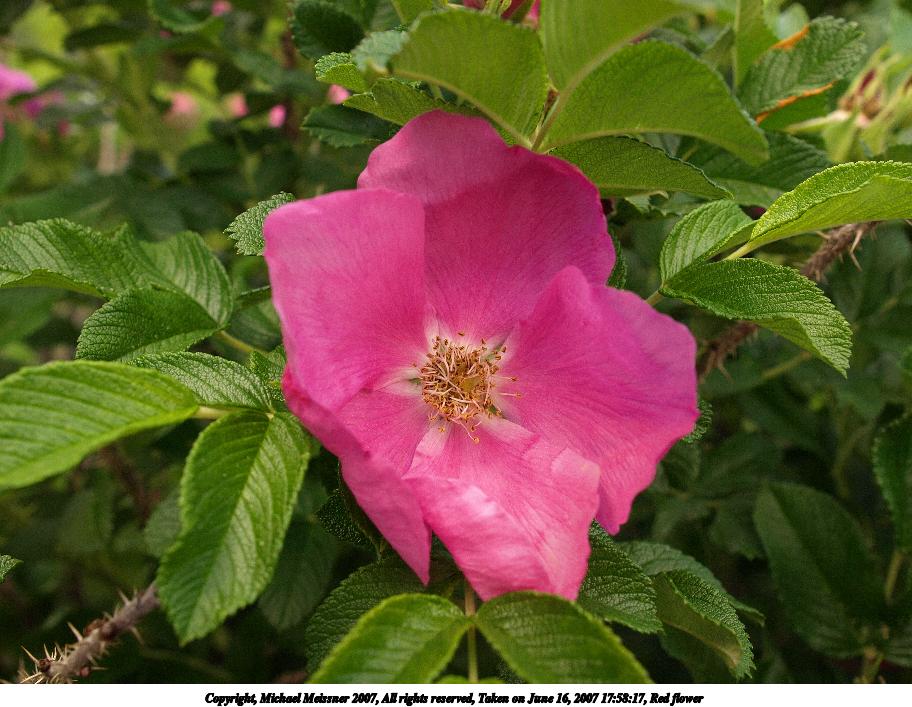 Picture #2: Red flower Thumb: 456x342, 42,515 bytes (42K) Small: 912x707, 116,461 bytes (114K), (html file) Copyright, Michael Meissner 2007, All rights reserved Olympus E-510 camera with Olympus 14-54mm f/2.8-3.5 lens f/5.0, ISO 400, 1/125 sec, 19.0mm, auto mode, vivid color, SHQ, manual wb, matrix metering, bias 0.3, -2 sharpening, image stabilization, exposure bracketing (shot 1) 35mm equivalent focal length 38.0mm Taken by Michael Meissner on June 16, 2007 17:58:17 Last modified on June 16, 2007 at 17:58 |