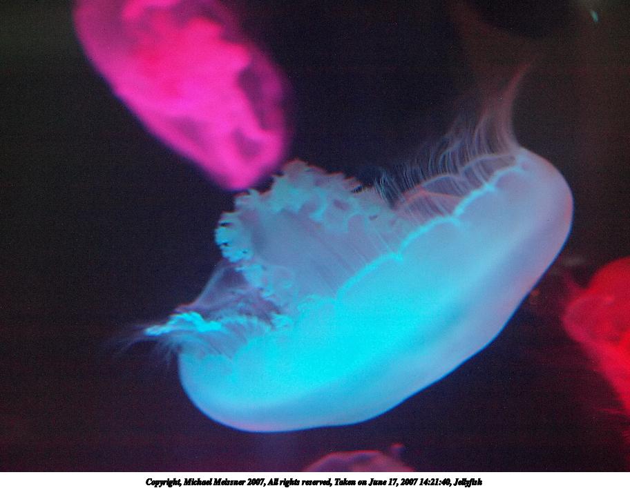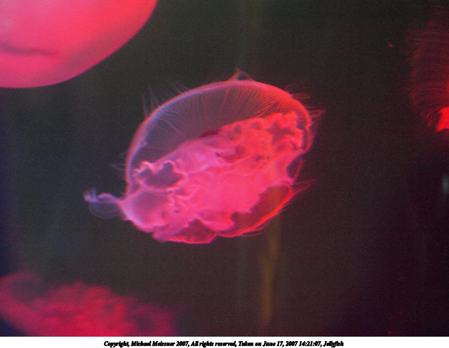 Picture #6: Jellyfish #5 Thumb: 320x240, 19,727 bytes (20K) Small: 640x503, 42,052 bytes (42K), (html file) Copyright, Michael Meissner 2007, All rights reserved Olympus E-1 camera with Olympus 14-54mm f/2.8-3.5 lens f/3.5, ISO 400, 1/125 sec, 52.0mm, auto mode, SHQ, matrix metering, +2 sharpening 35mm equivalent focal length 104.0mm Taken by Michael Meissner on June 17, 2007 14:20:57 Last modified on June 17, 2007 at 14:20 |
